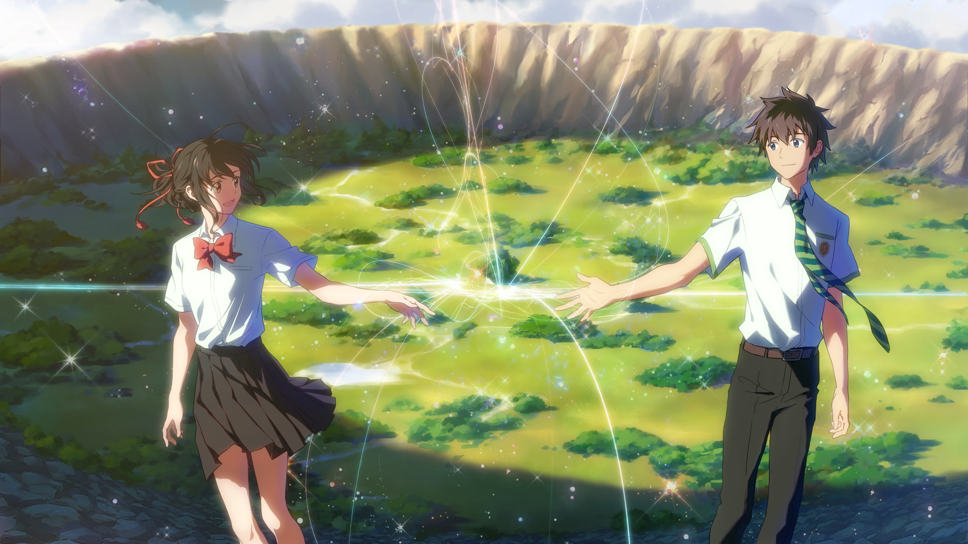 女孩背影唯美古风瀑布动漫免费电脑桌面壁纸下载