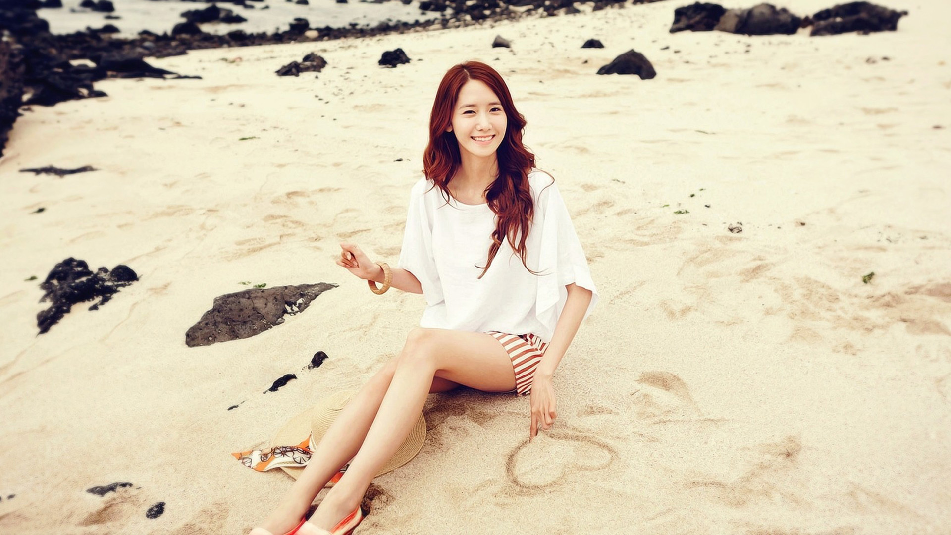 朴正花海边沙滩性感写真 美女免费电脑壁纸下载