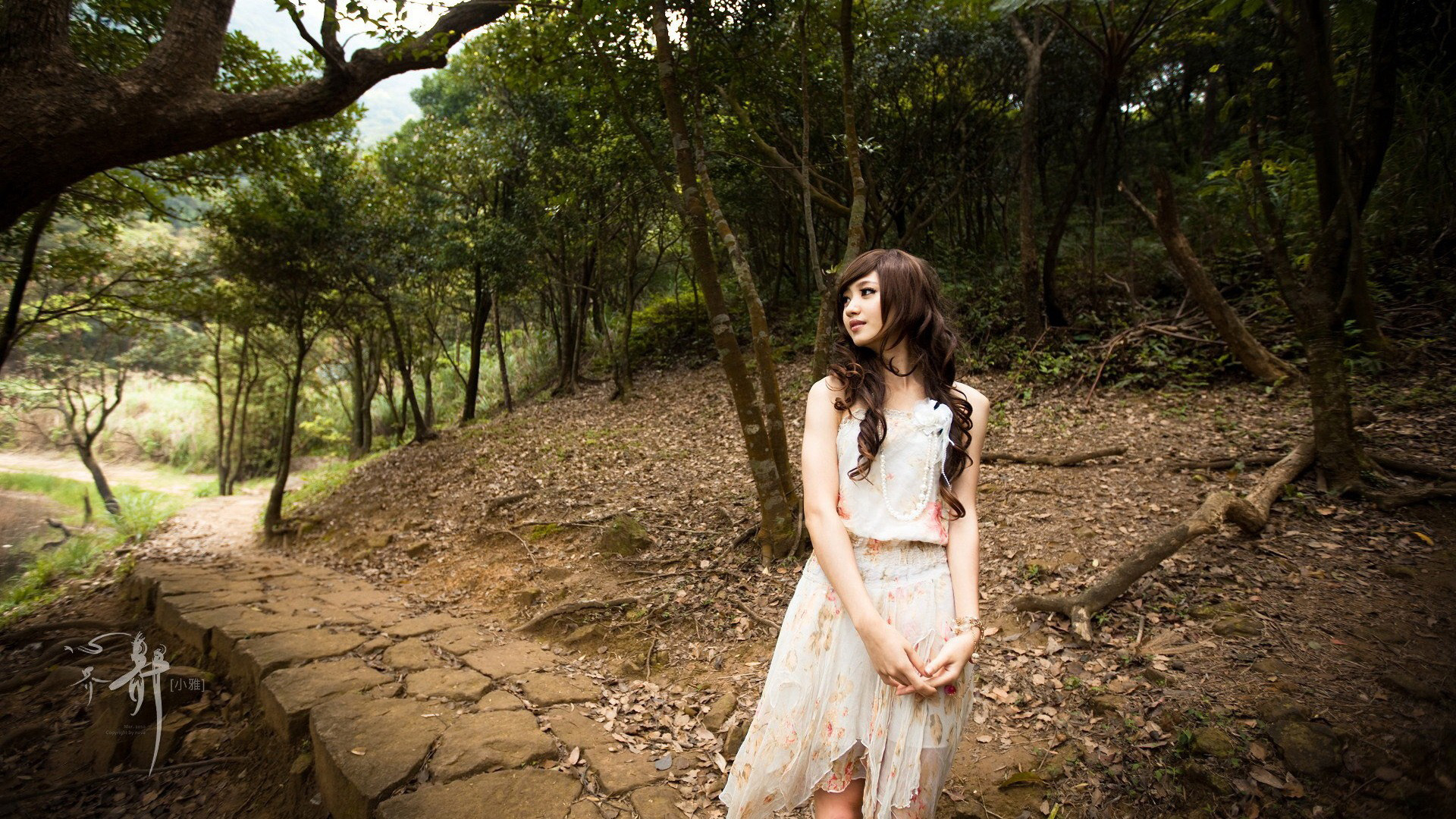 安静唯美树林河流旁女孩高清美女免费电脑壁纸下载