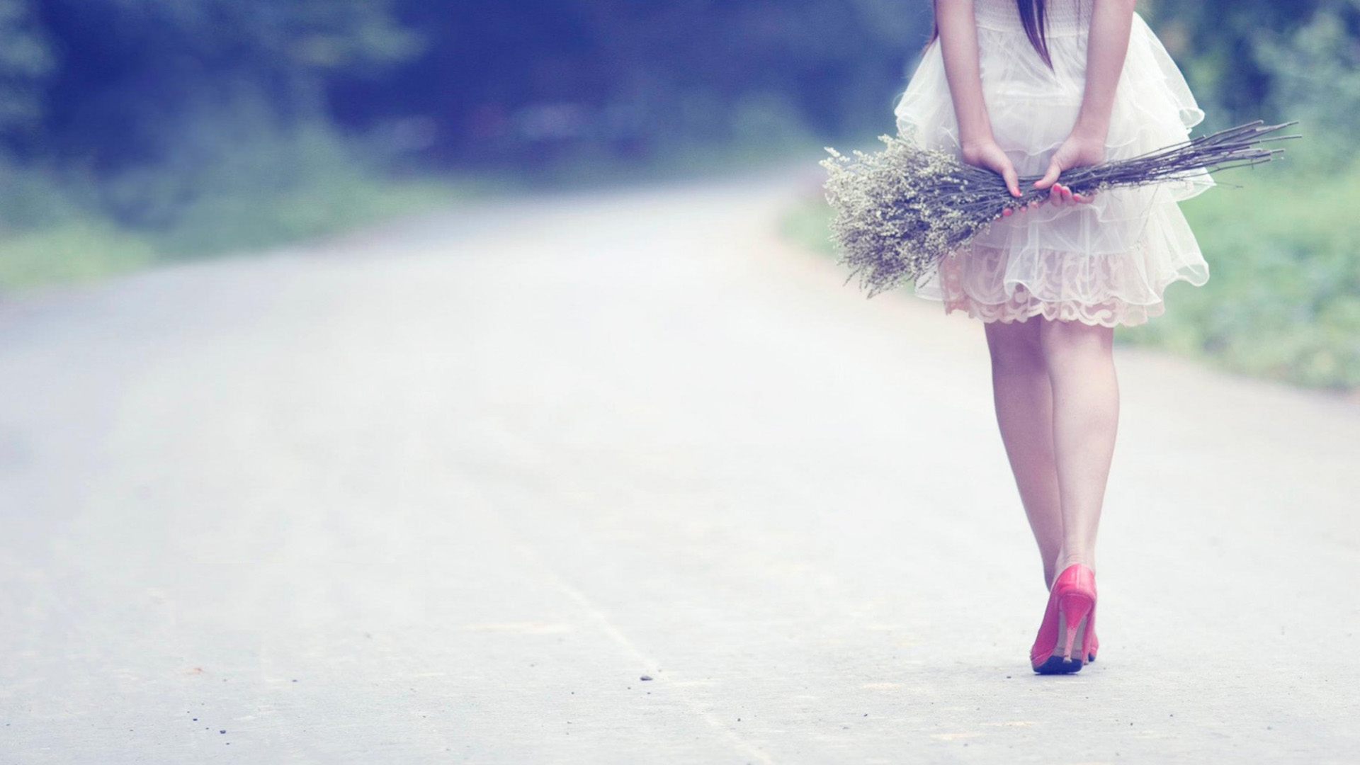 美女白色裙子戴帽子背影小清新电脑壁纸免费下载