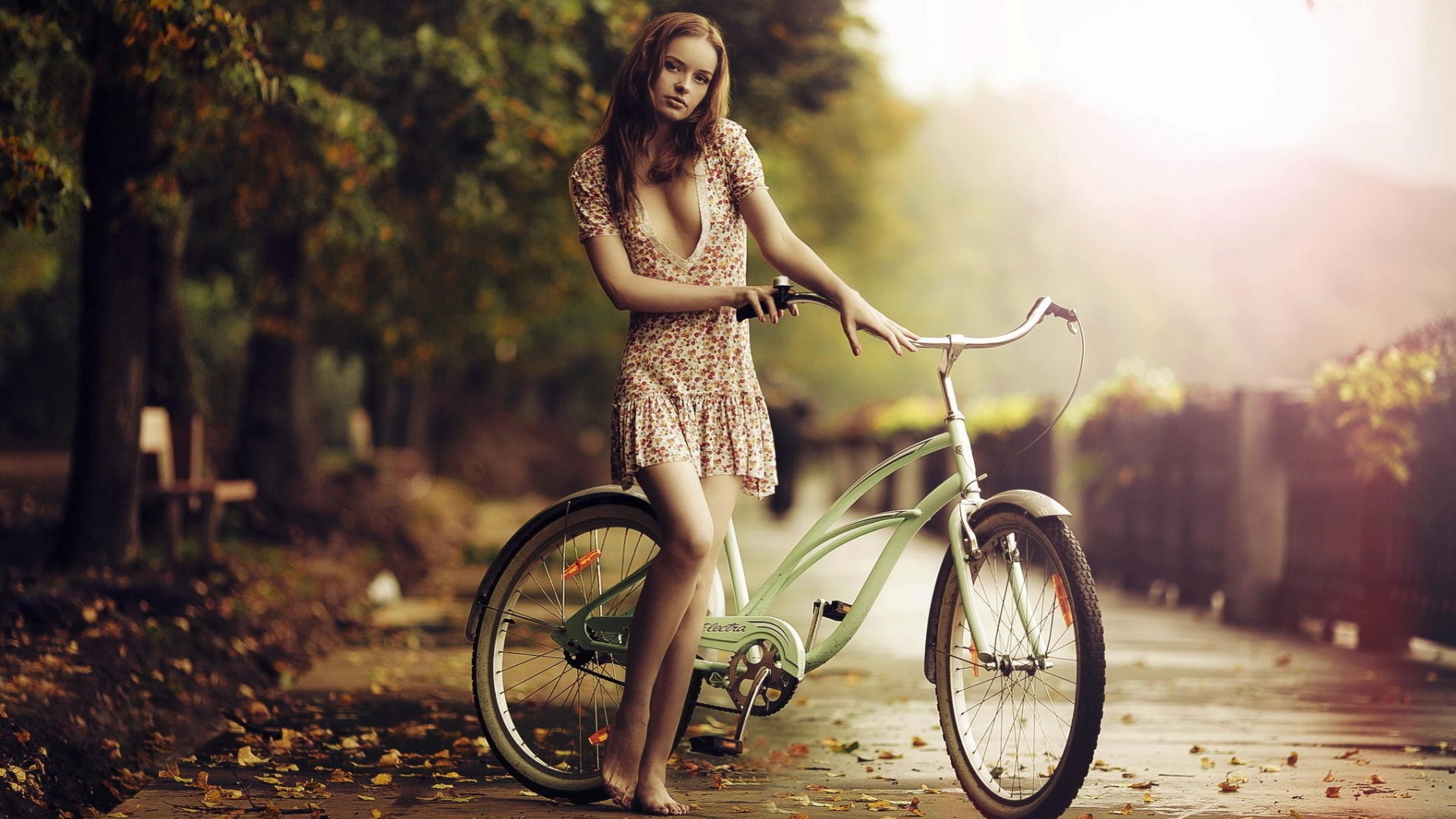 树林风景美女心情免费电脑桌面壁纸下载