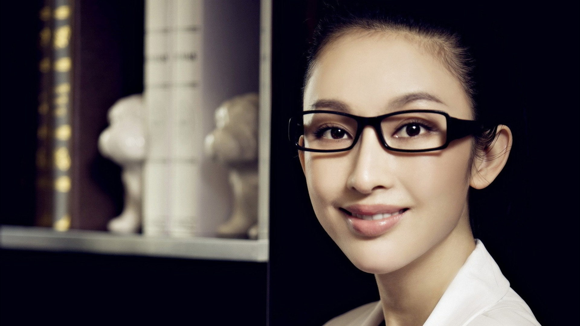 陆萱萱职业装美女模特,白色衬衫裙子电脑壁纸免费下载