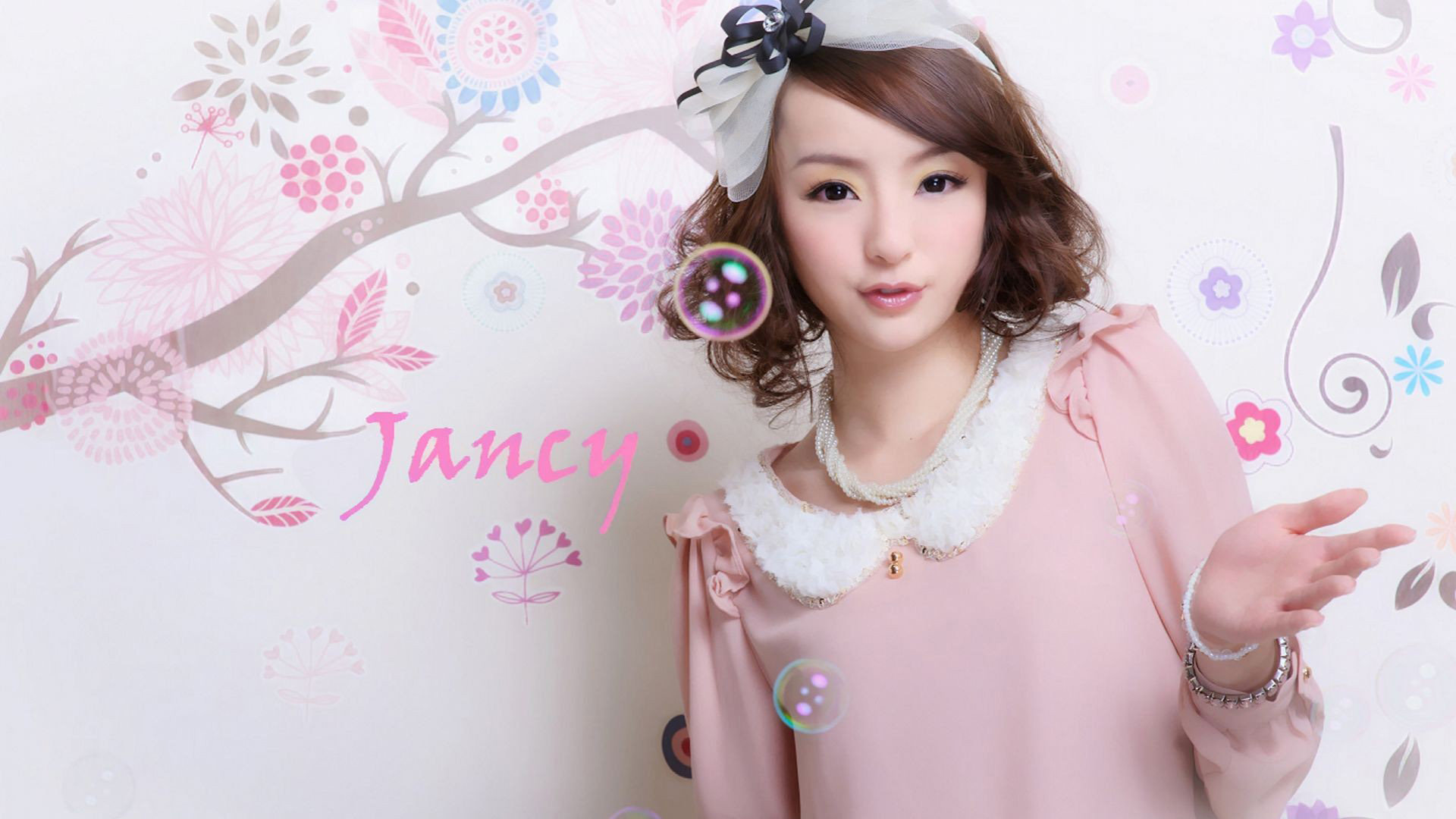 鲜花背景邓恩熙美女免费电脑壁纸下载