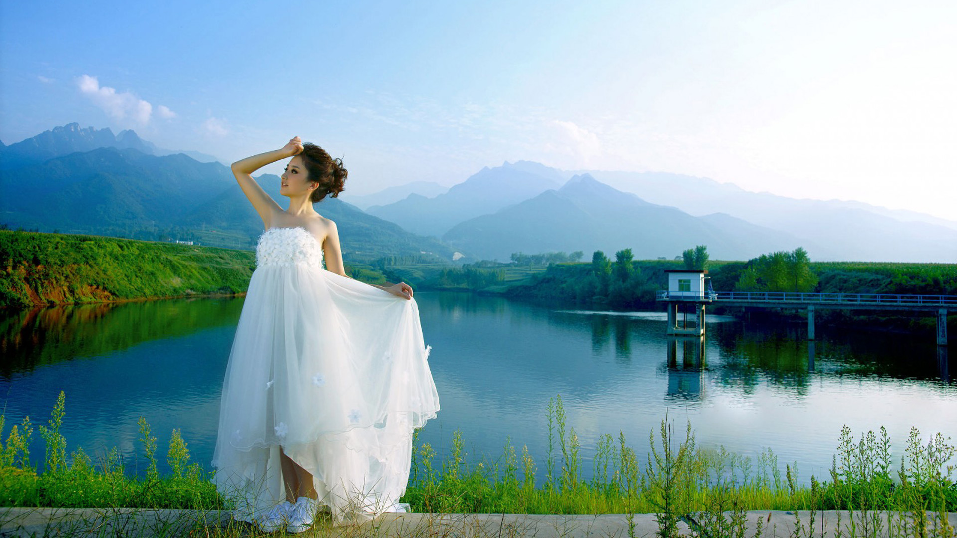 女孩戏水放松心情 美女电脑壁纸免费下载