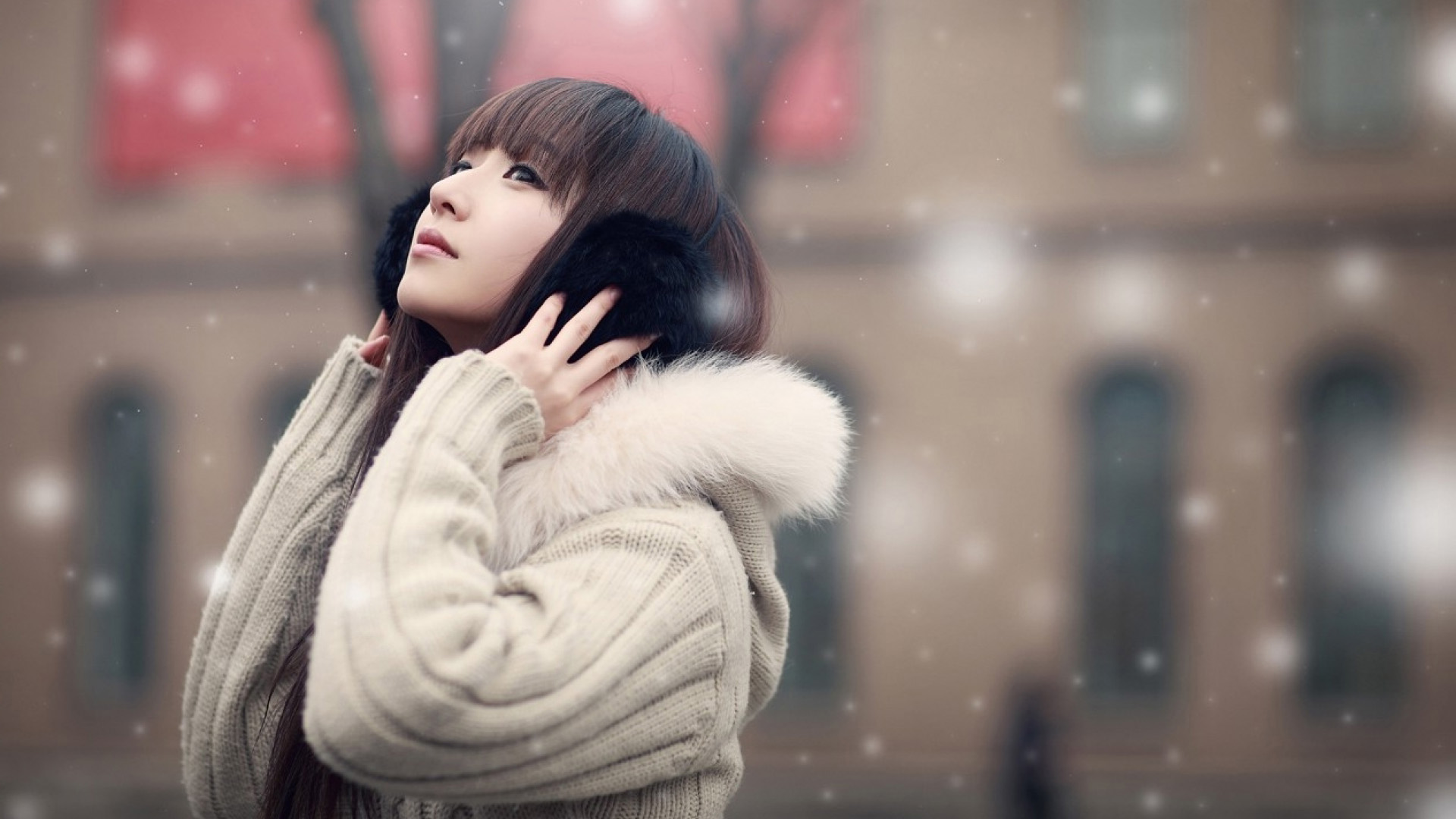 漂亮美女闭眼心情主题城市风桌面壁纸 免费电脑壁纸下载
