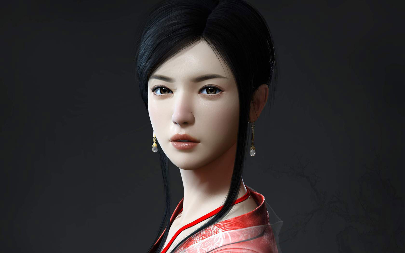 国风红色裙子杨幂高清美女电脑壁纸免费下载