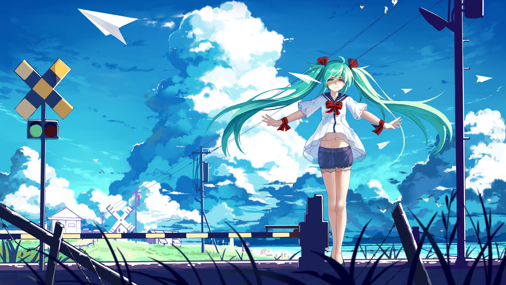 初音未来女孩天空大海星星唯美动漫电脑壁纸免费下载