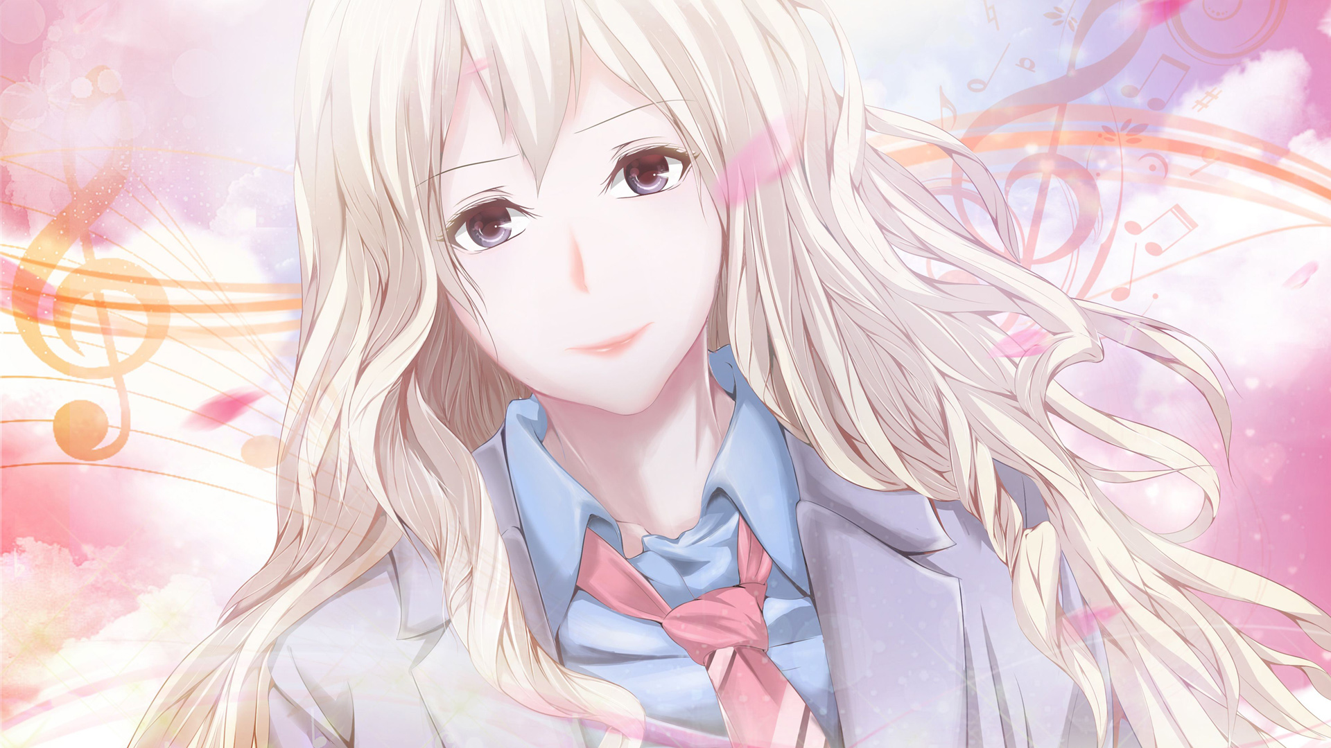 唯美动漫女生壁纸,女孩水边校服配蝴蝶结 免费电脑壁纸下载