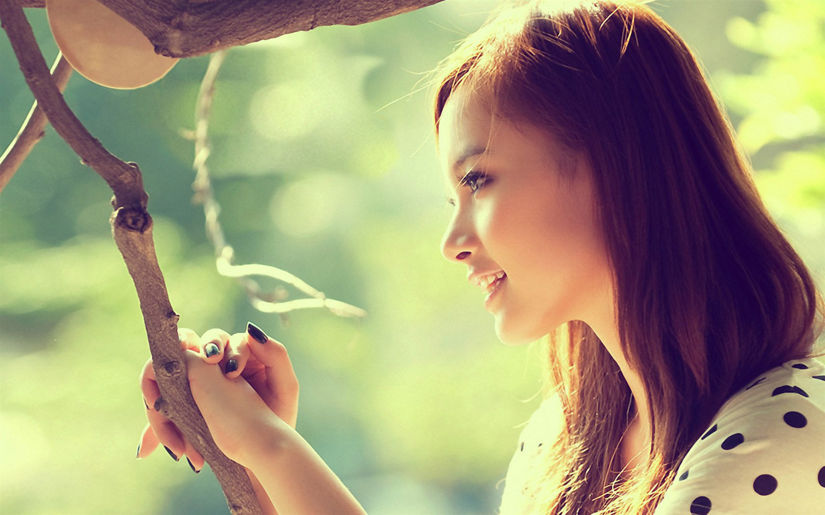 夏天林间可爱美女高清免费电脑壁纸下载