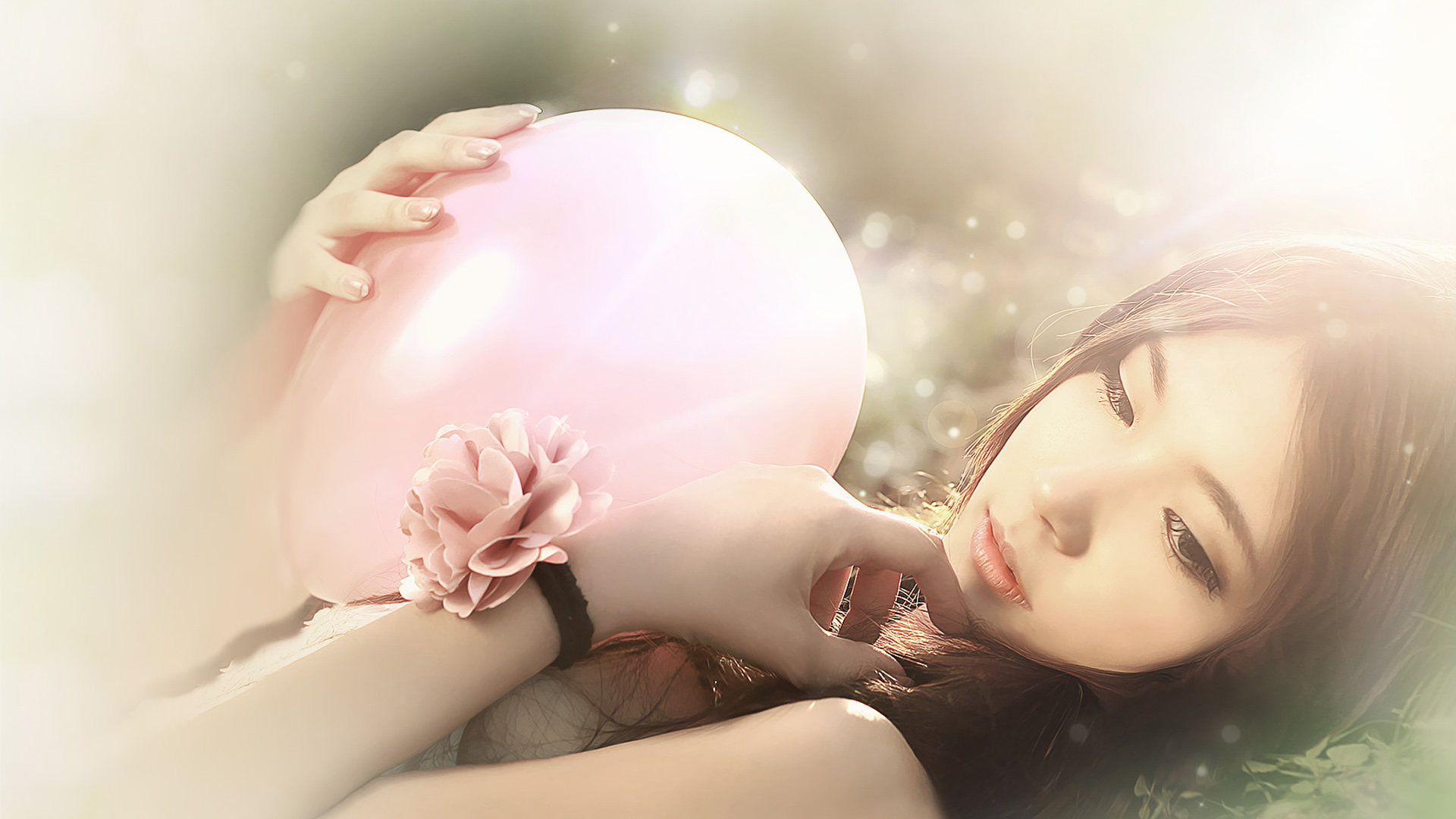 养眼邻家美女穿可爱粉色睡裙甜美好心情电脑壁纸免费下载