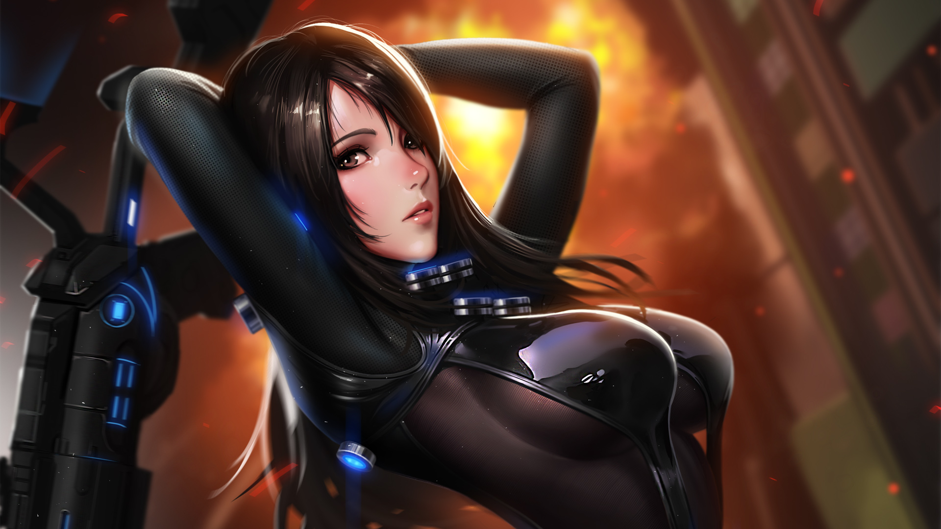 女孩持武士刀月球背景精美动漫壁纸免费下载
