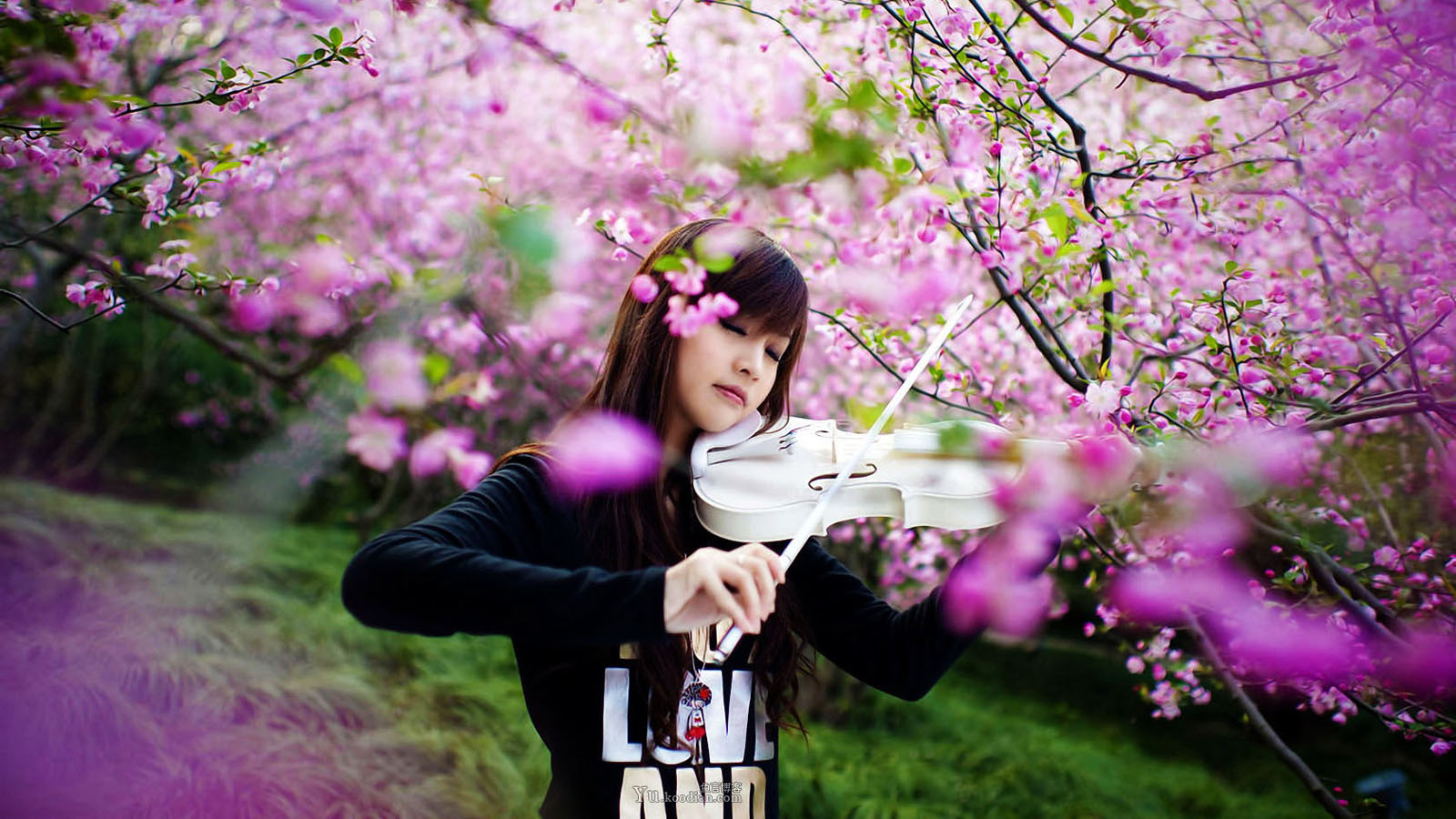 邻家女孩张嘉庭户外绿植主题免费电脑美女壁纸下载