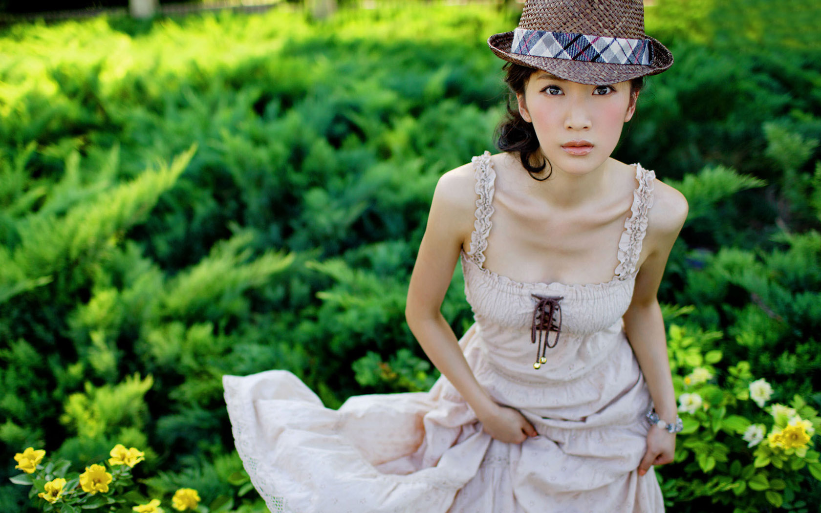 美女白色裙子戴帽子高清免费电脑壁纸下载