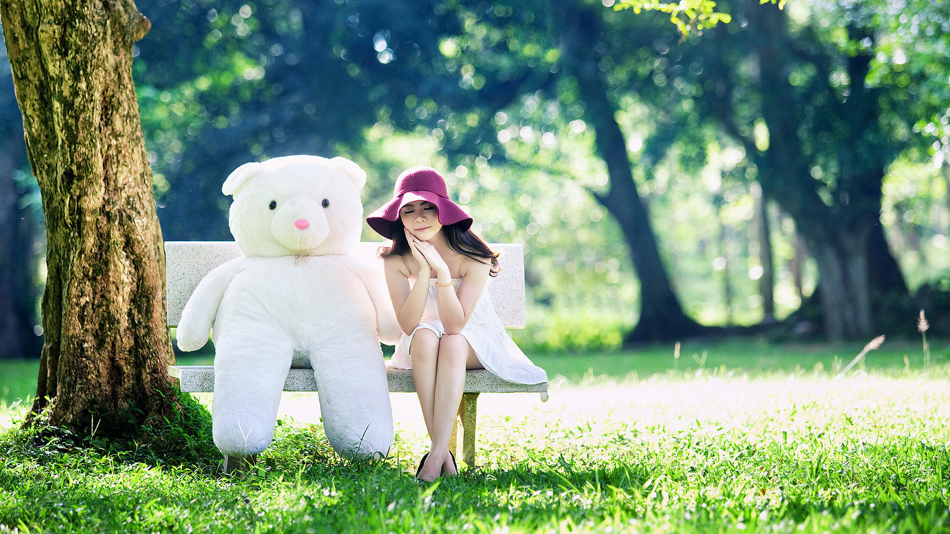 女孩与玩具熊心情图片 美女壁纸免费电脑壁纸下载