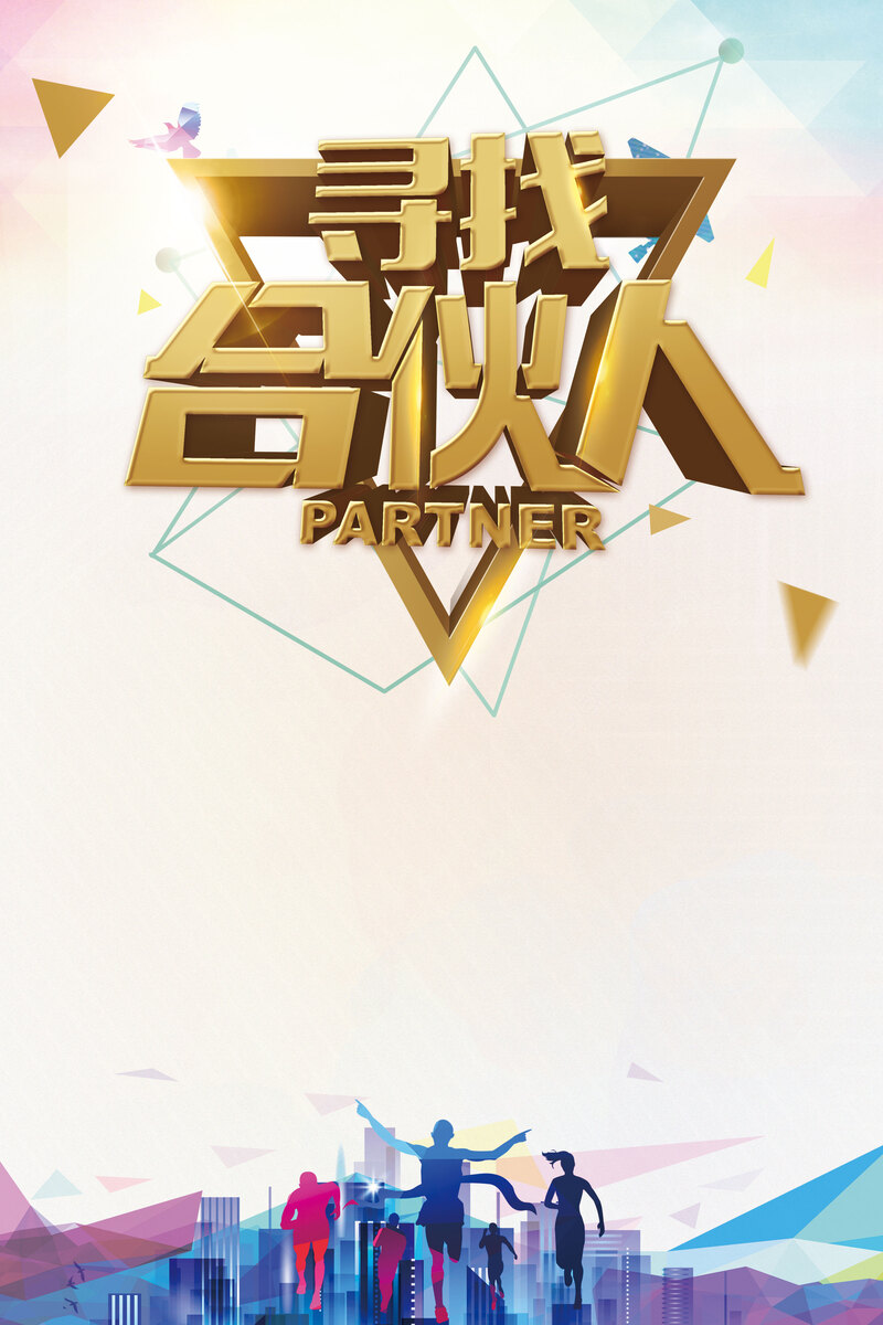 寻找合伙人,我们诚邀您加入我们的团队!现提供招聘海报背景PSD高清JPG图片,采用扁平化简约设计风格,PSD格式设计素材免费下载。与您共创美好未来,期待您的加入!