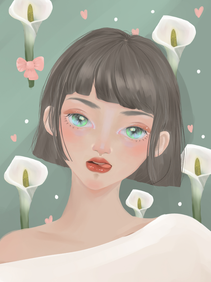 插画头像:花语少女之马蹄莲,复古中国风高清JPG图片,设计素材免费下载。
