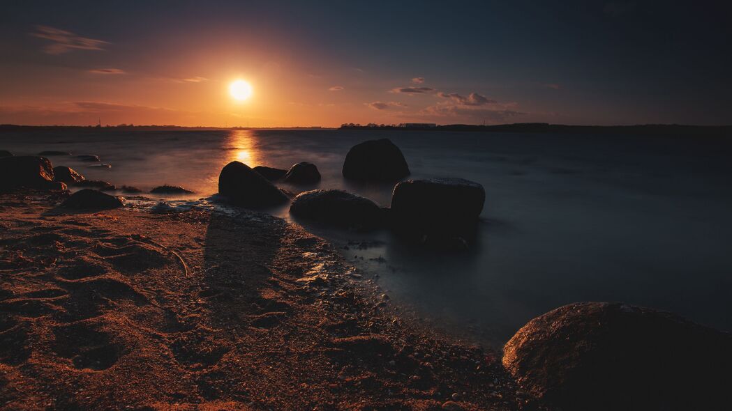 日落 石头 水 波浪 4k壁纸 3840x2160