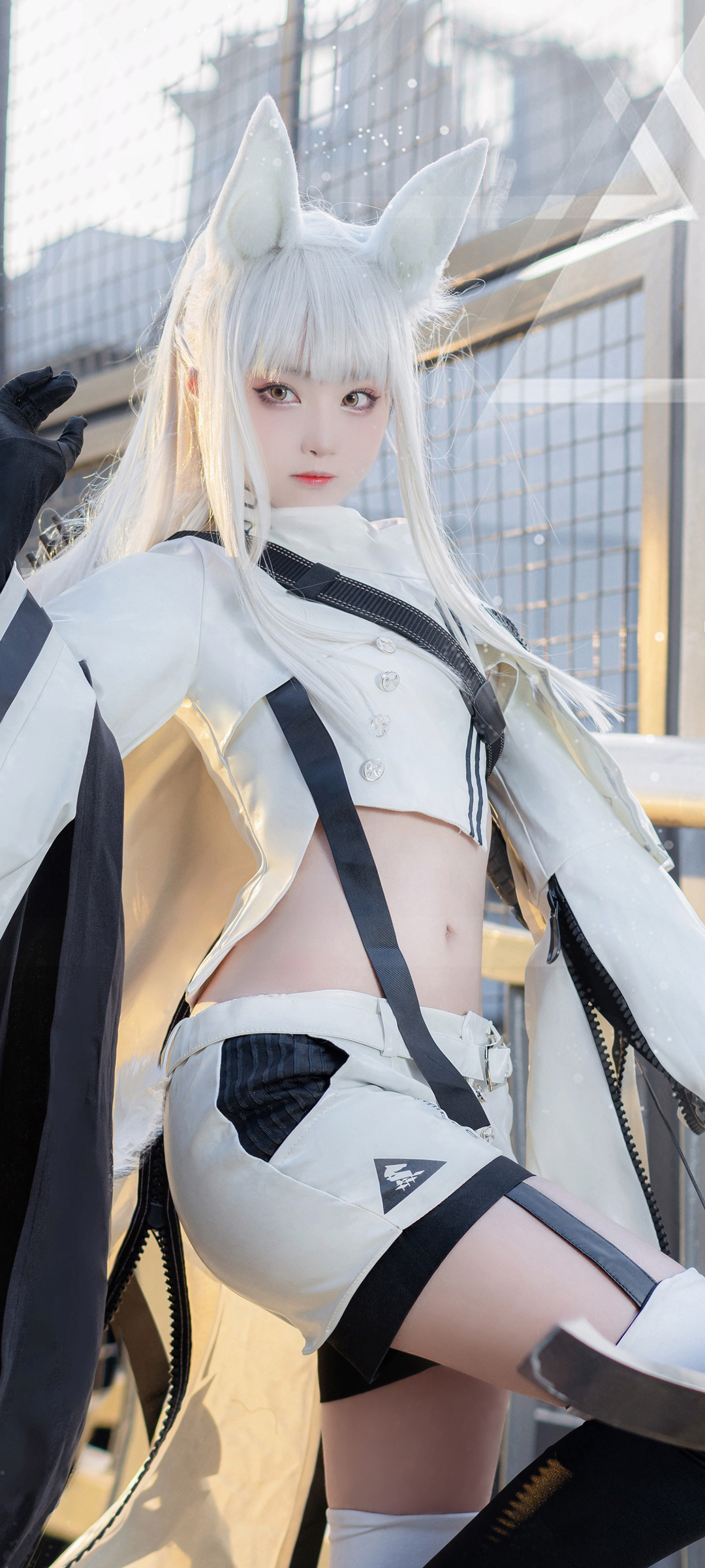 可爱短发长腿美女白色毛衣好看身材手机壁纸免费下载