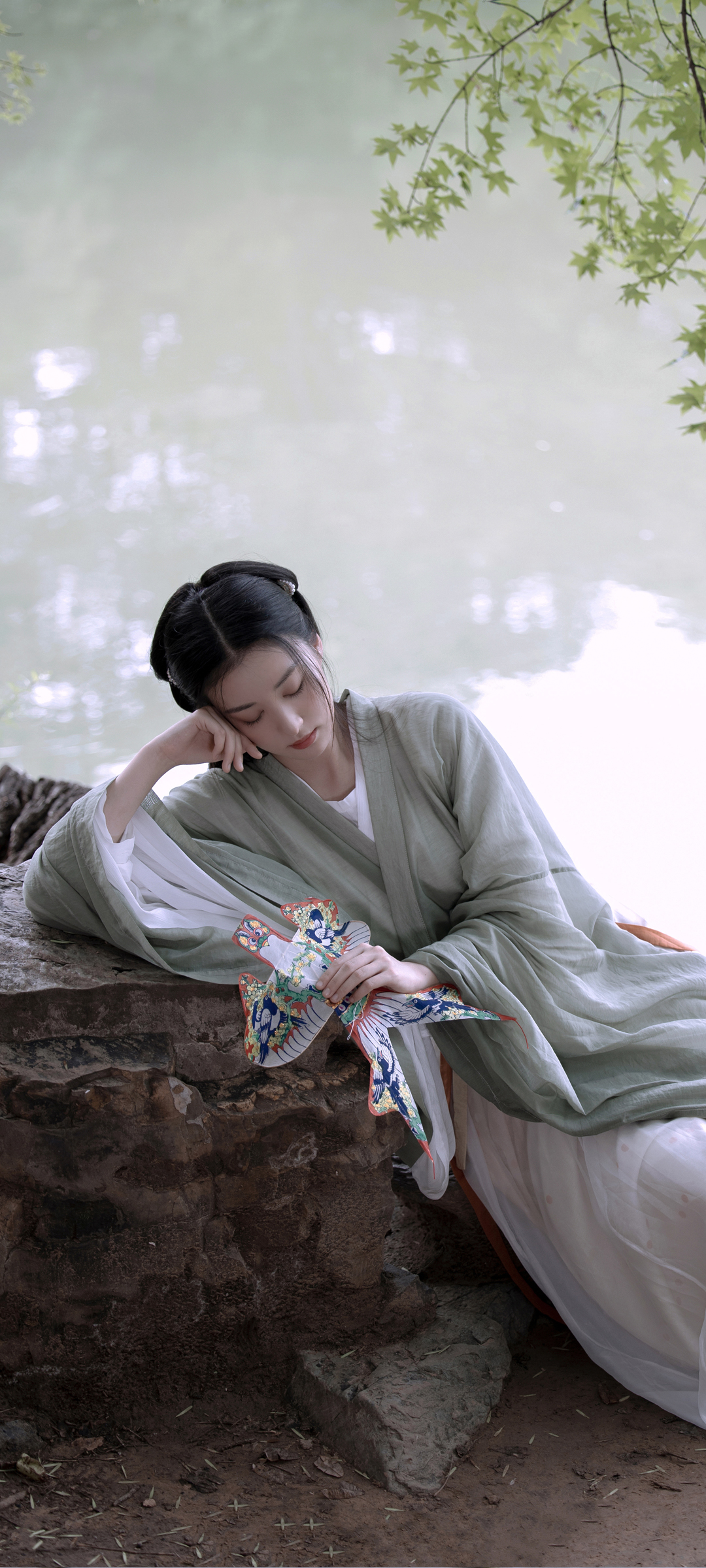 湖畔 汉服美女清新手机壁纸