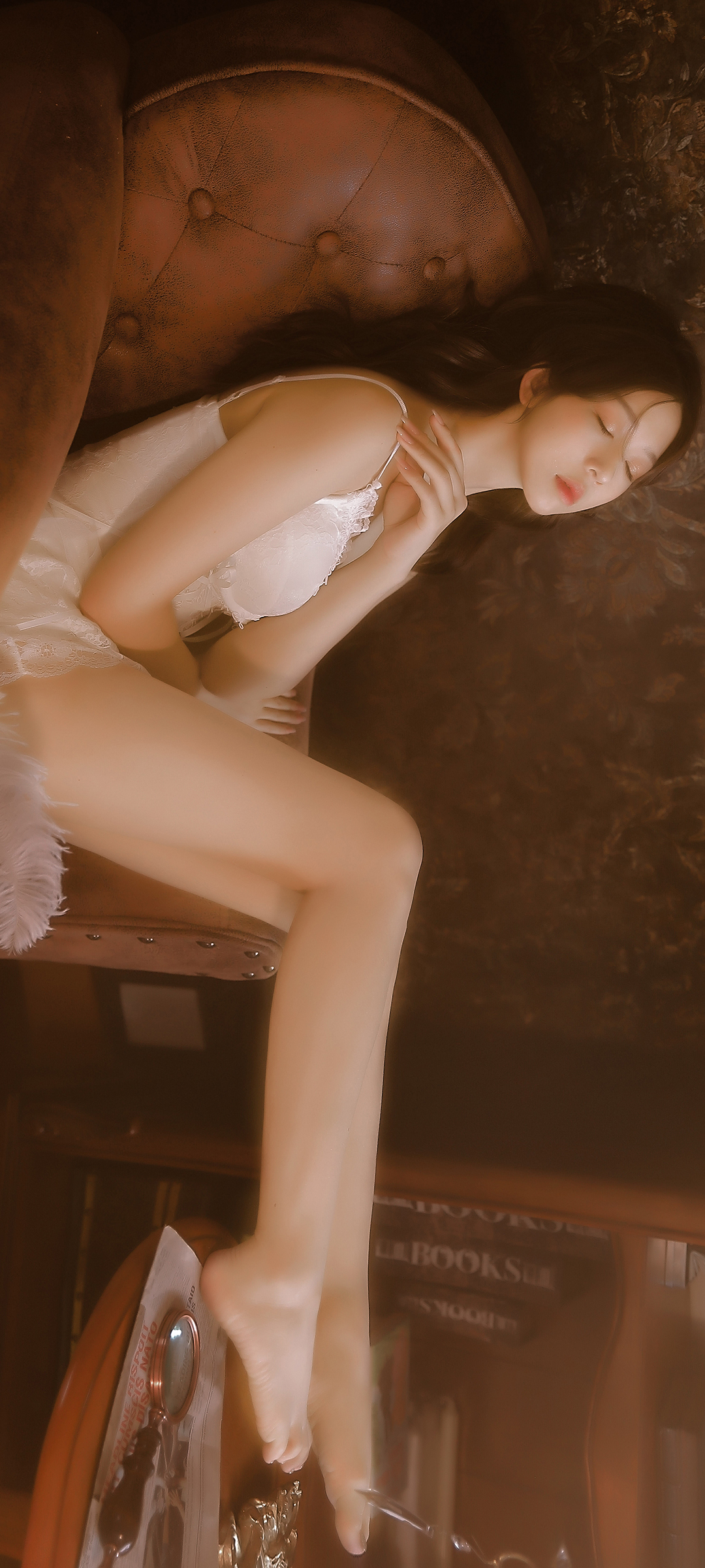 白鹿穿黑色连衣裙沙发摆拍美女手机壁纸免费下载