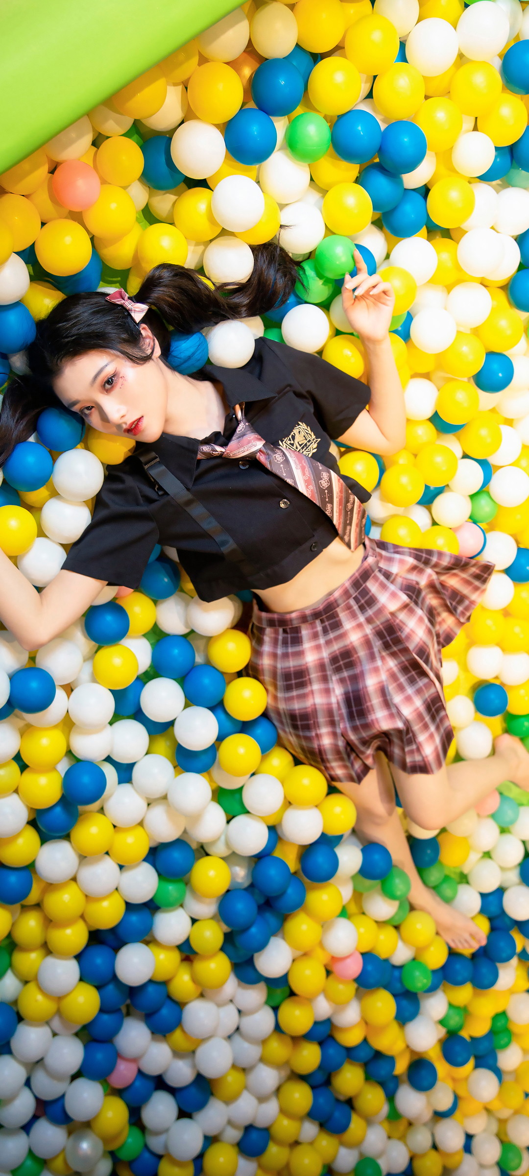 海洋球背景制服百褶裙美女美腿手机壁纸免费下载