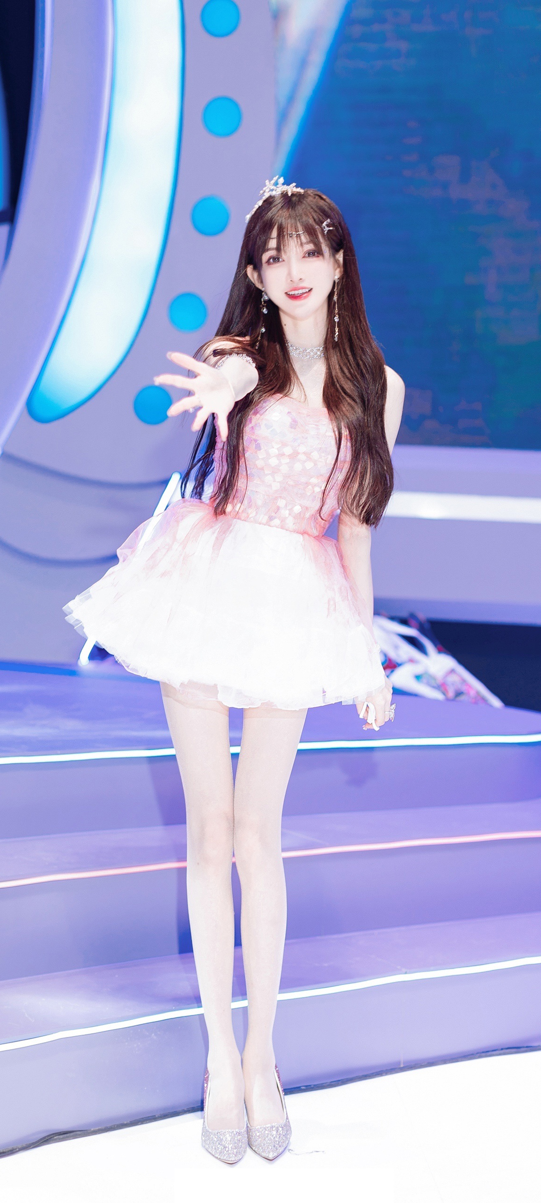 王羽杉 粉色裙子 美腿 美女全面屏手机壁纸