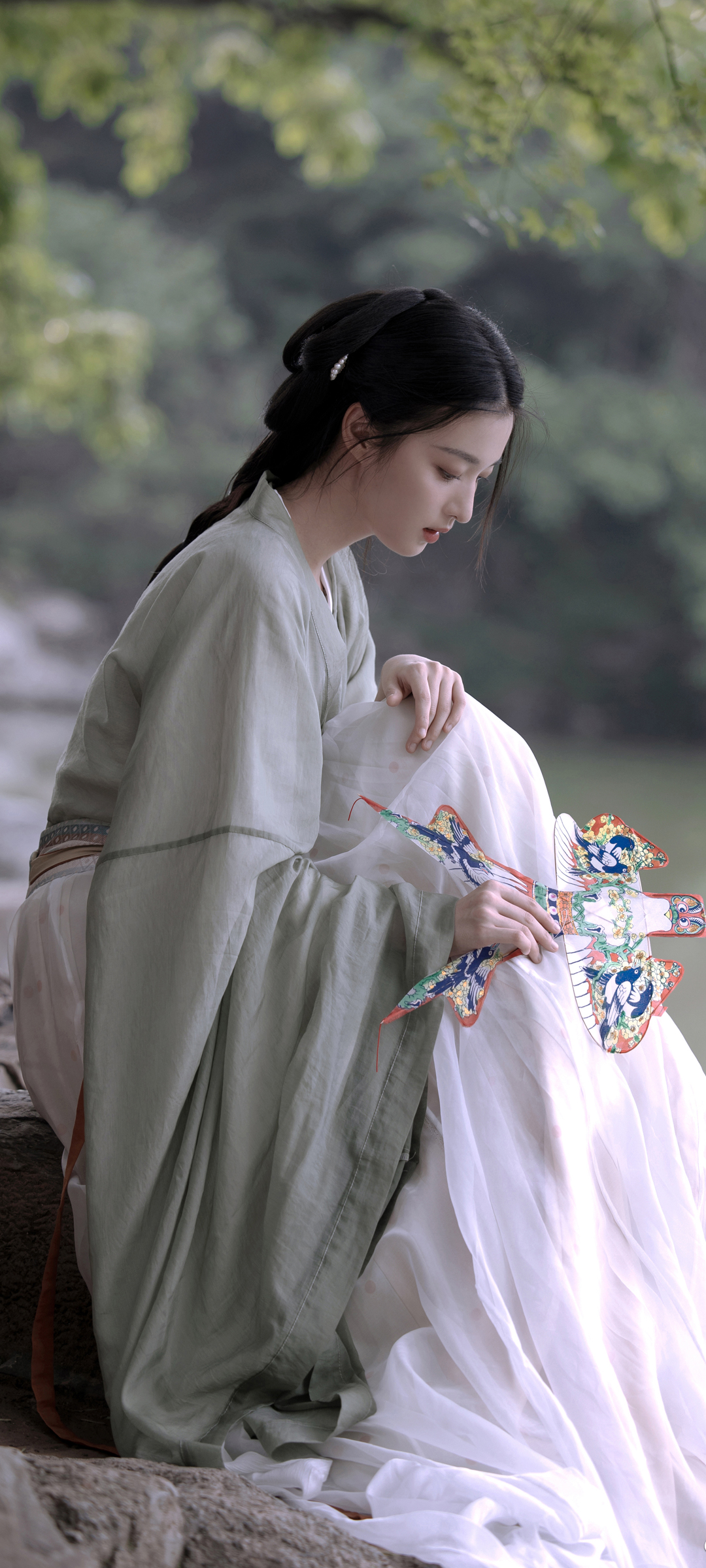 自然风景 汉服美女 湖畔 风筝 王楚然高清手机壁纸