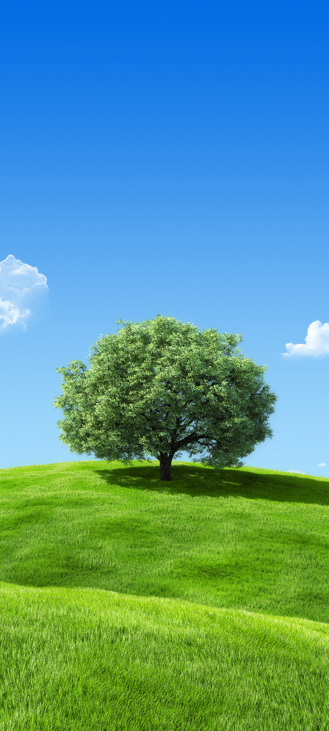 蓝天白云绿色草地与大树风景免费手机壁纸下载