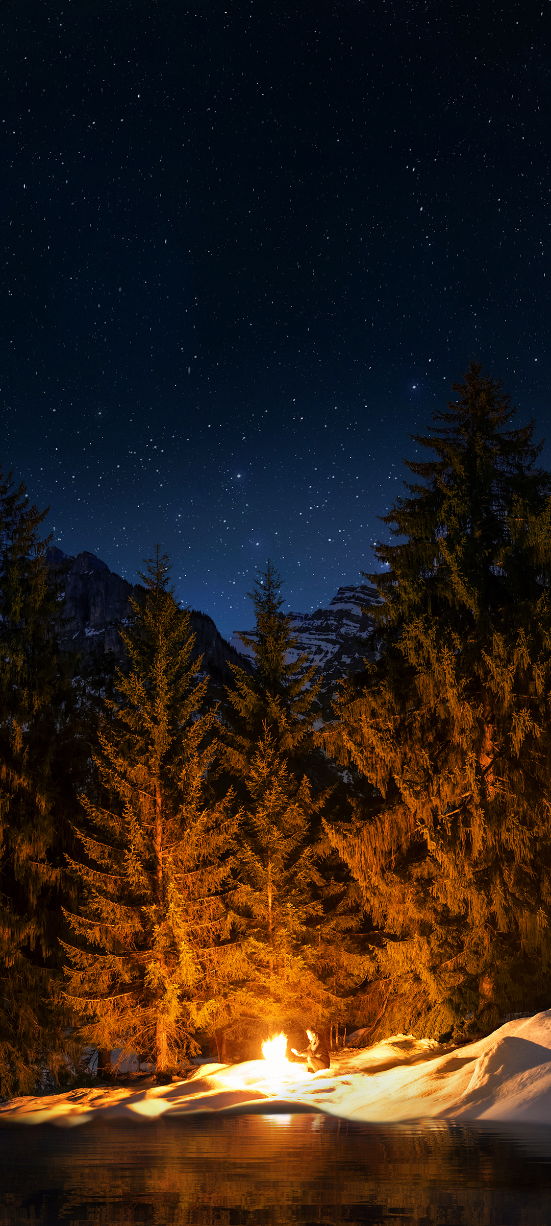 雪山湖水树倒影 绝美自然风景免费手机壁纸下载