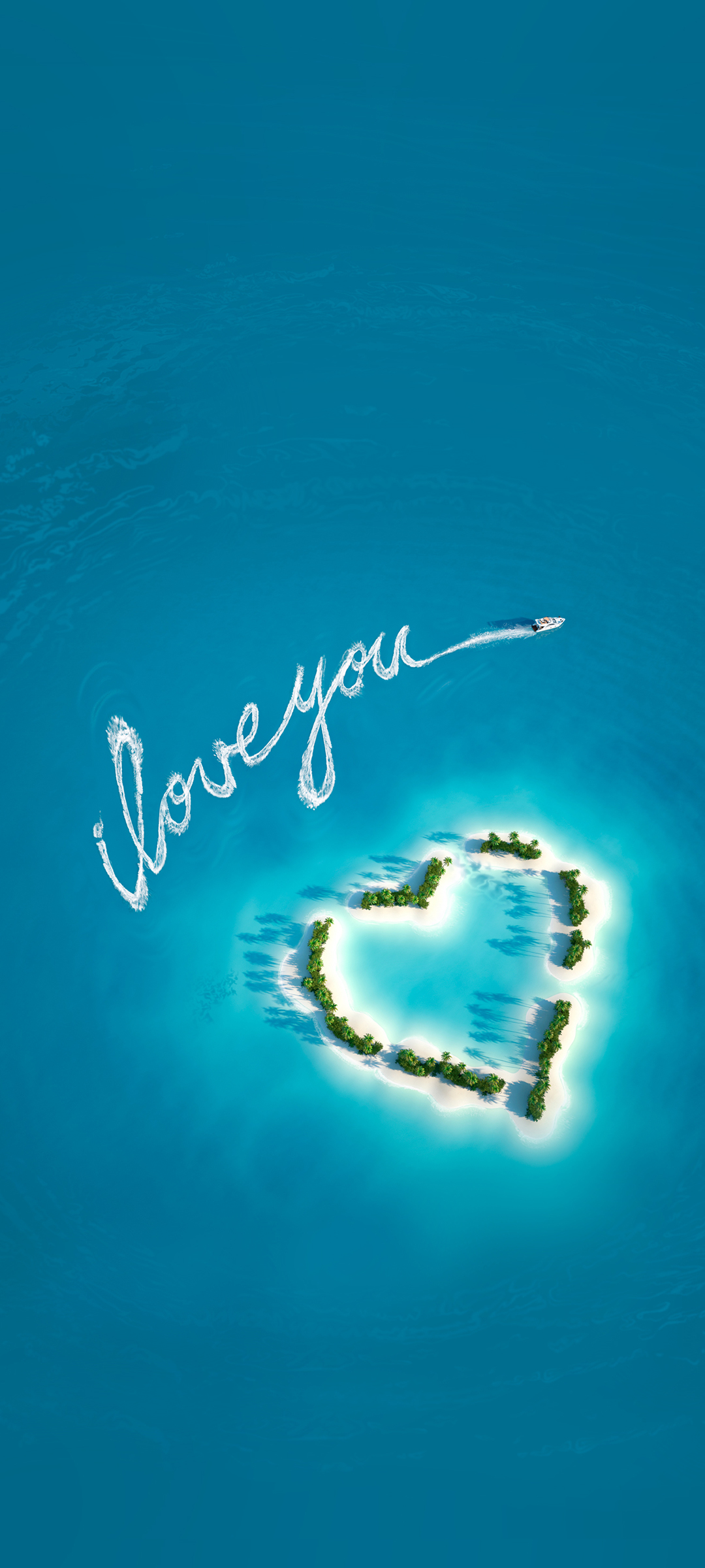 海岛爱心主题浪漫大海风景免费手机壁纸下载
