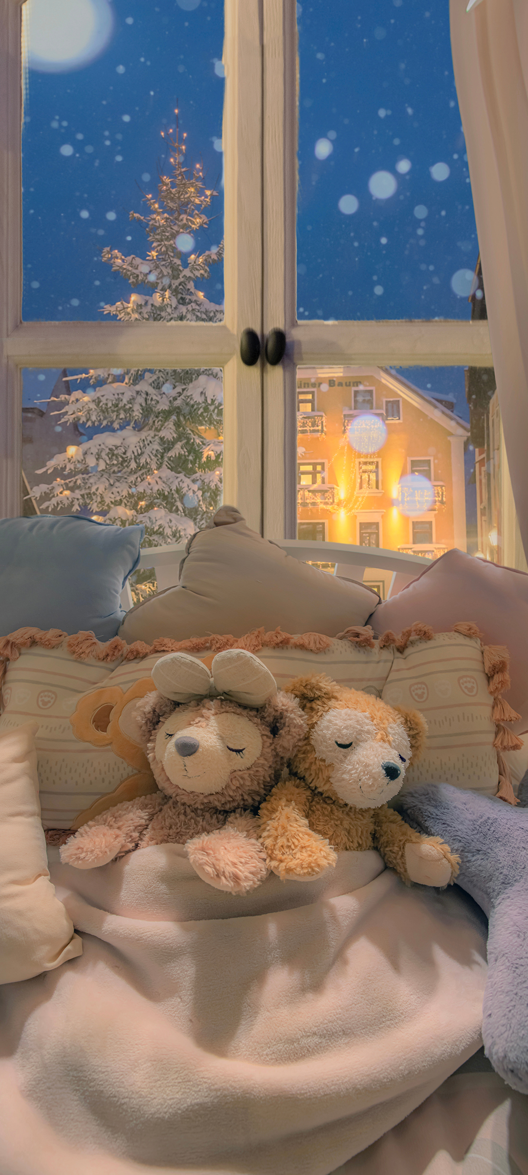 圣诞节沙发旁两只可爱玩具小熊风景免费手机壁纸下载