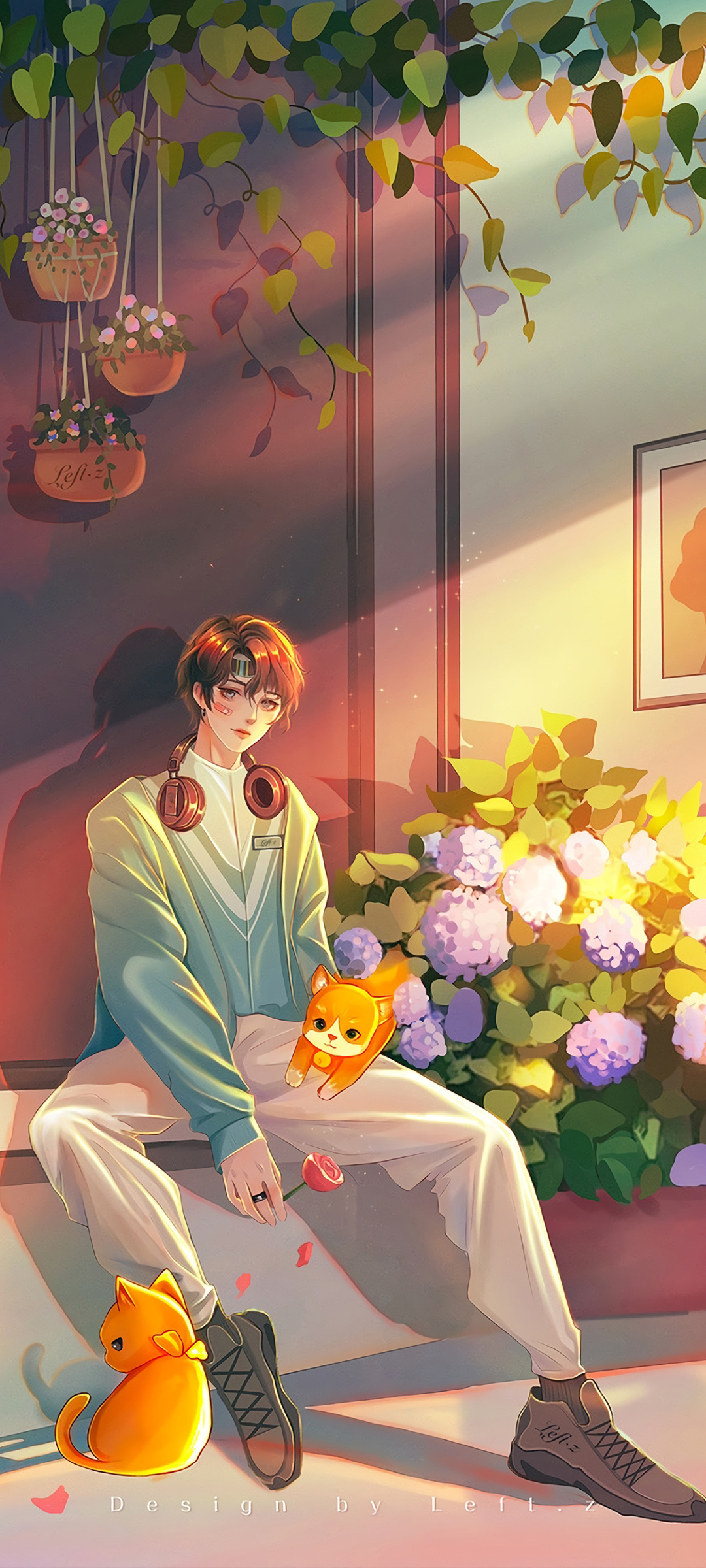 男孩与猫鲜花主题情侣手机壁纸免费下载