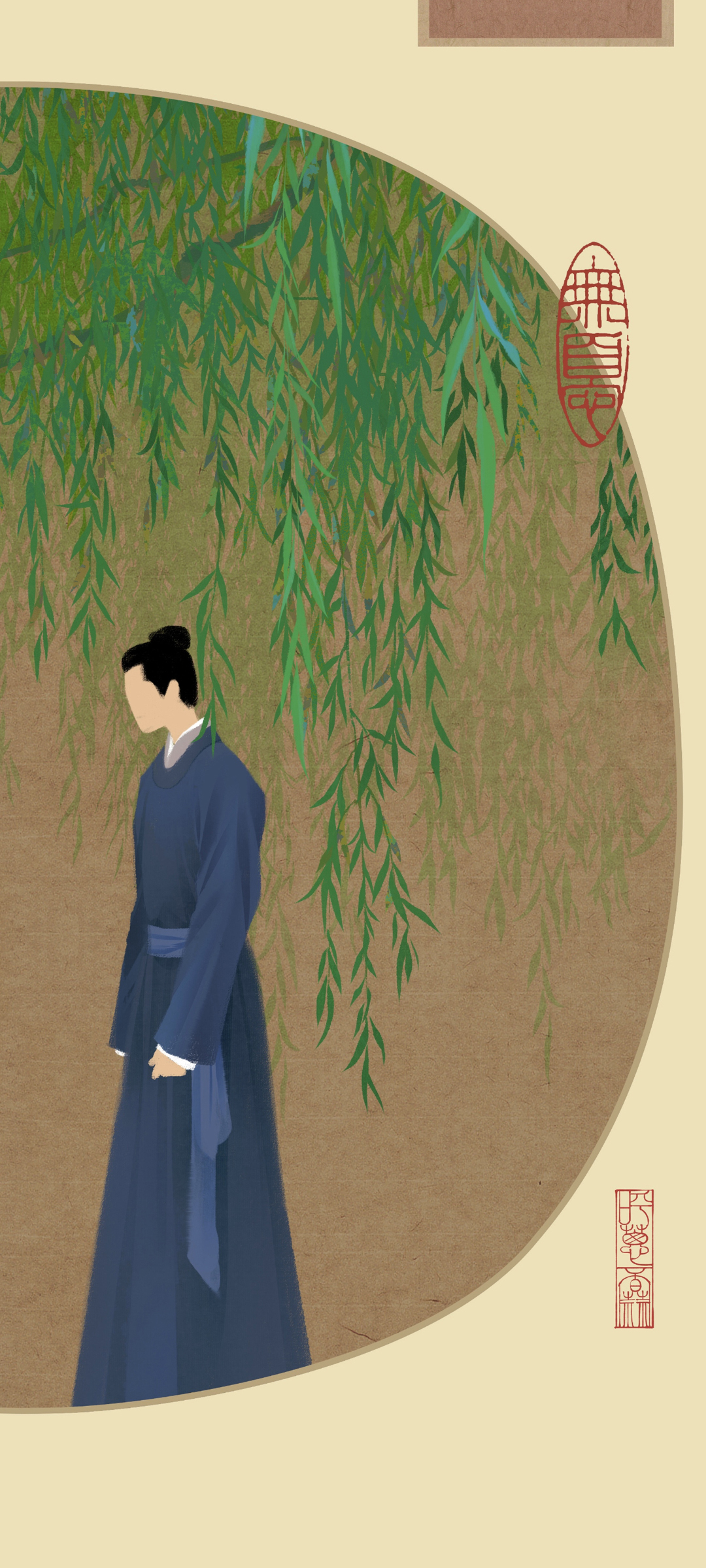 梦华录插画风男主情侣手机高清全屏壁纸免费下载