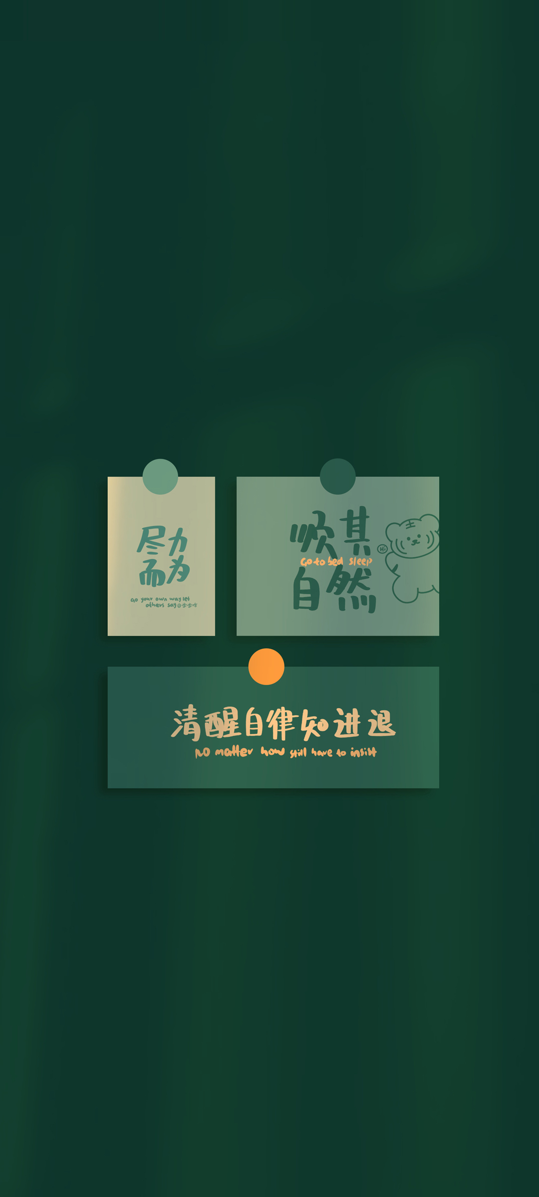尽力而为顺其自然 清醒自律正能量绿色背影高清手机壁纸免费下载