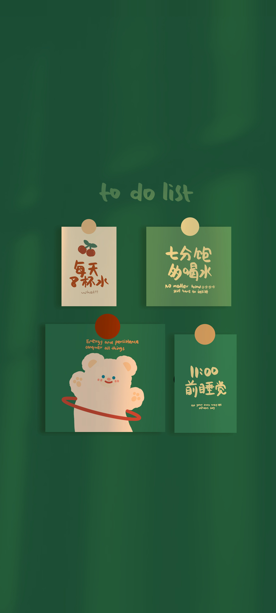 11点前睡觉  七分饱多喝水 多运动 绿色护眼背影 正能量全面屏手机壁纸