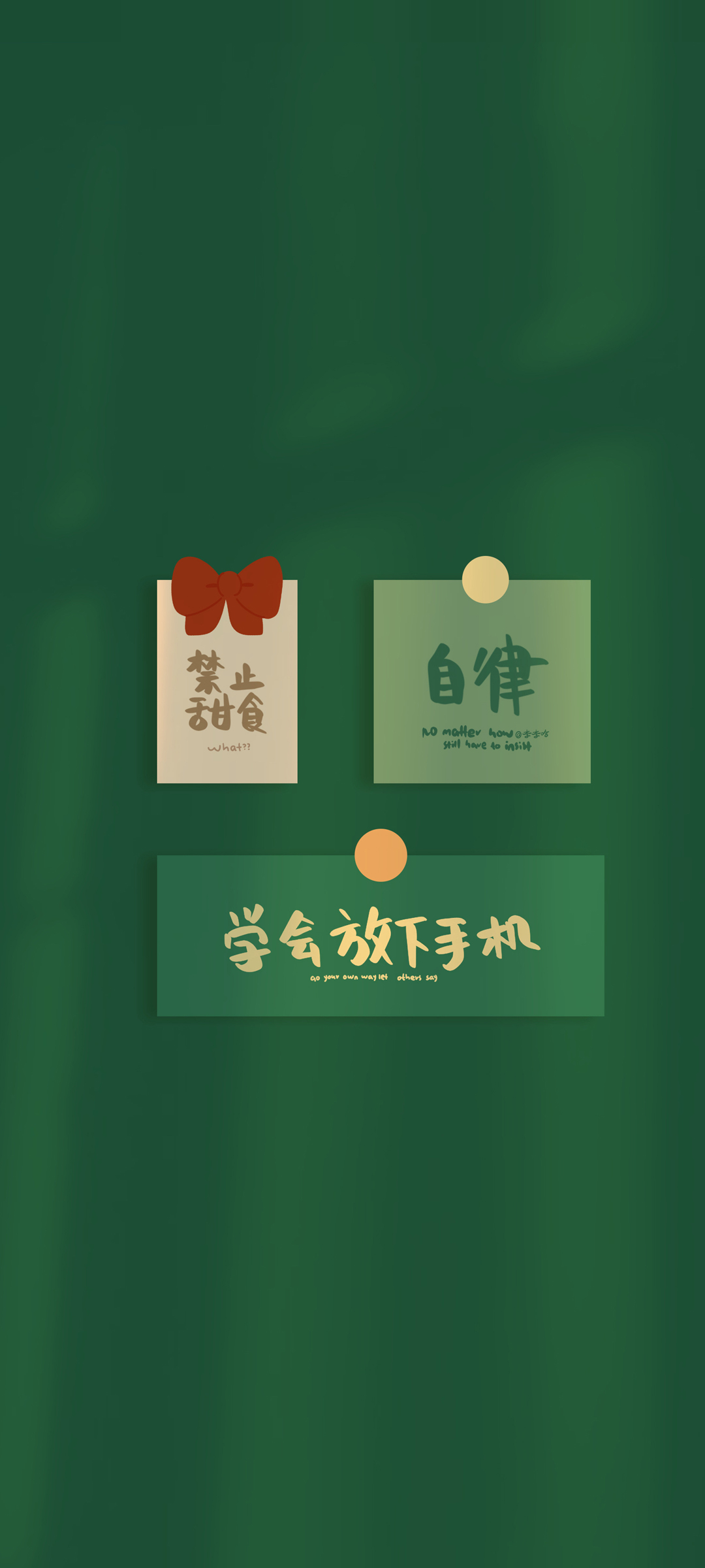 自律正能量高清全面屏手机壁纸,学会放下手机 绿色背影文字款免费下载