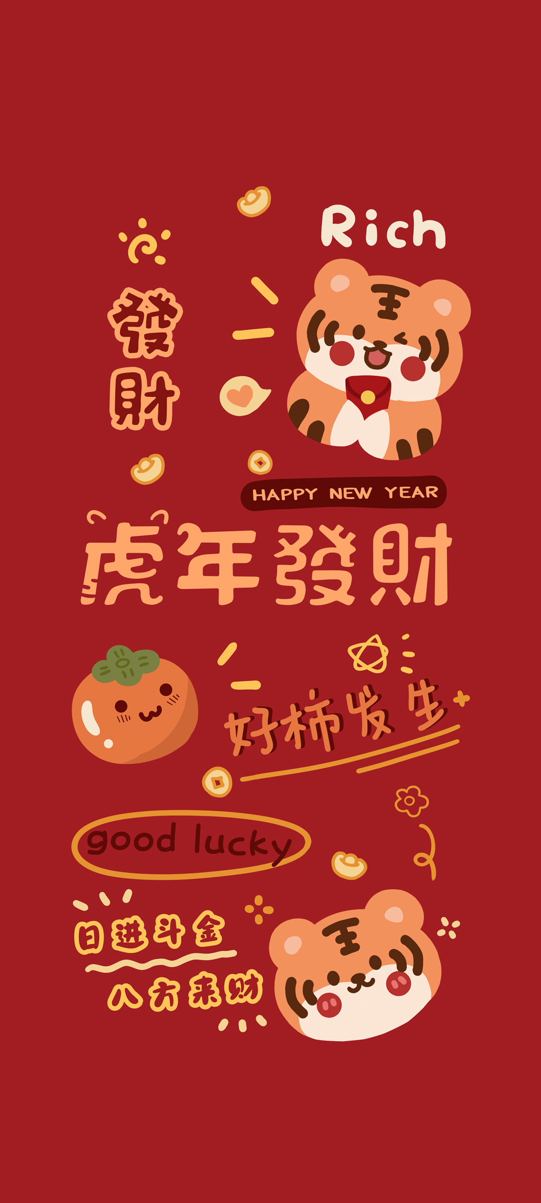 2022虎年心柿事成新年全面屏手机壁纸免费下载