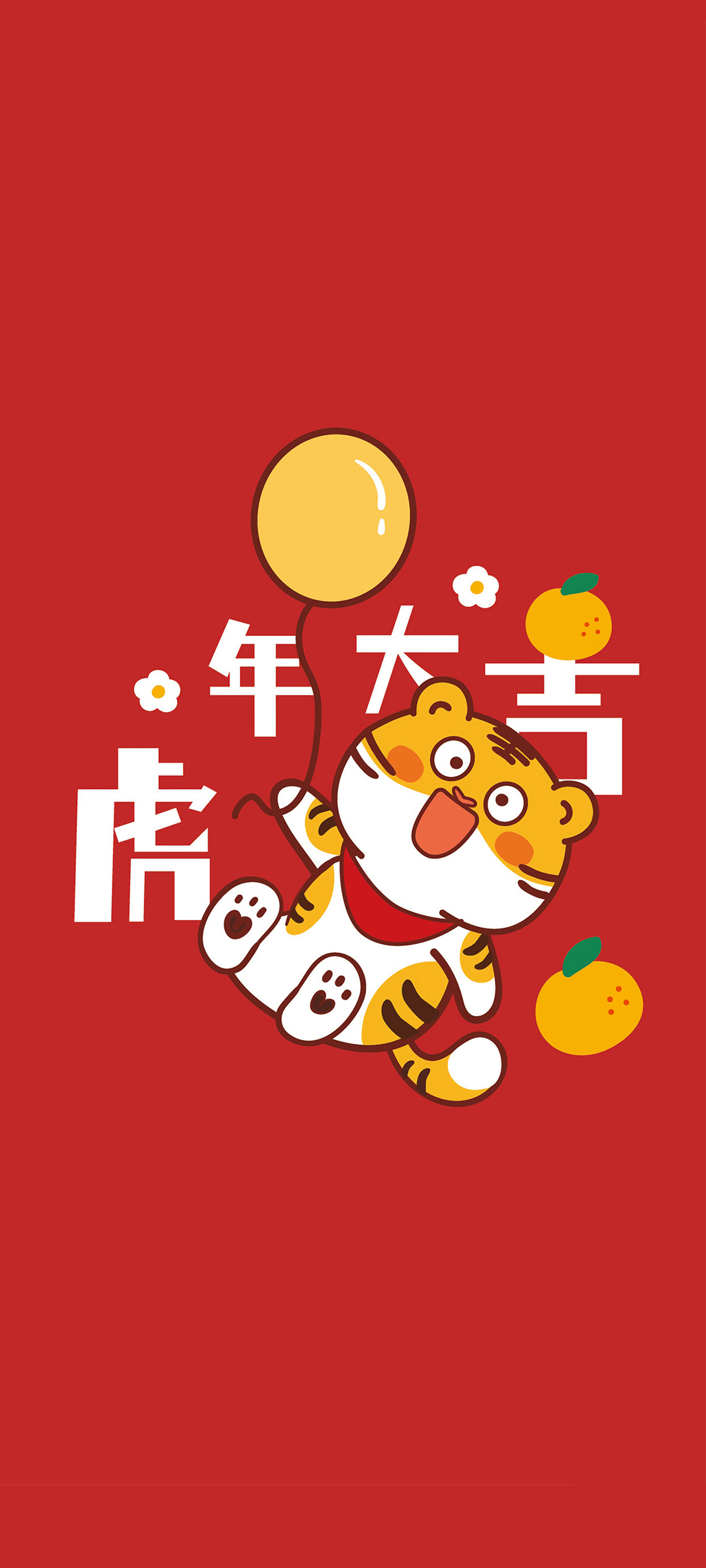 2022虎虎生威可爱喜庆春节全面屏新年免费手机壁纸下载