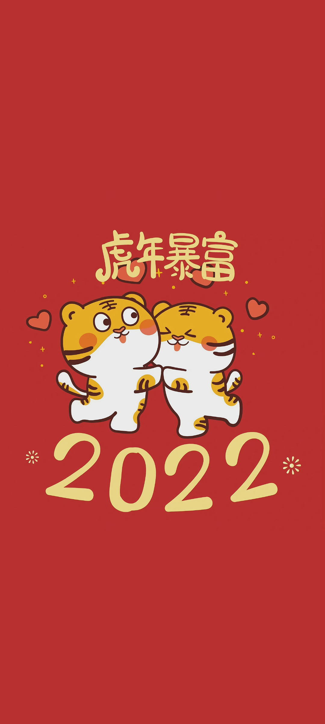 2022虎年小女孩抱元宝新年免费手机壁纸下载