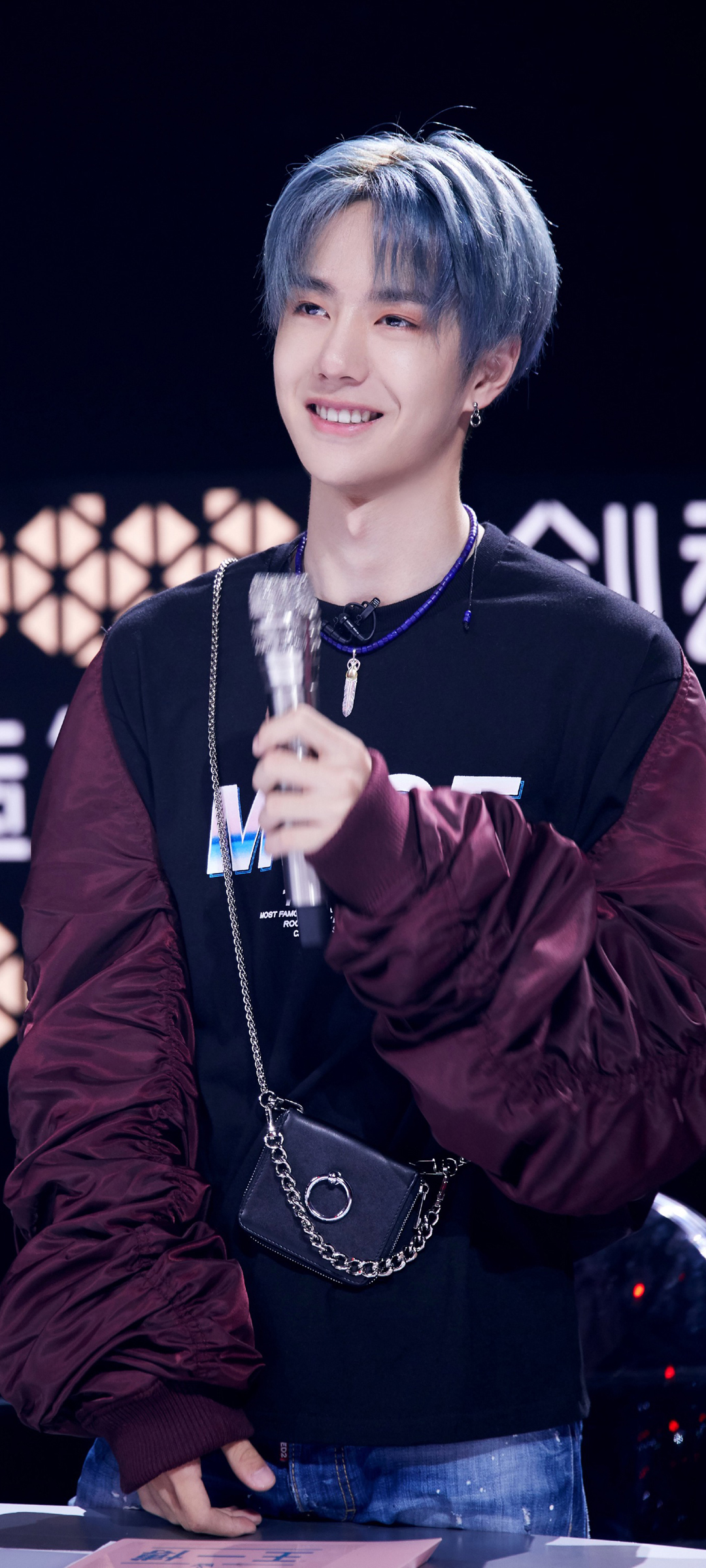 王鹤棣黑色西装手持麦克风壁纸 免费下载帅哥手机壁纸
