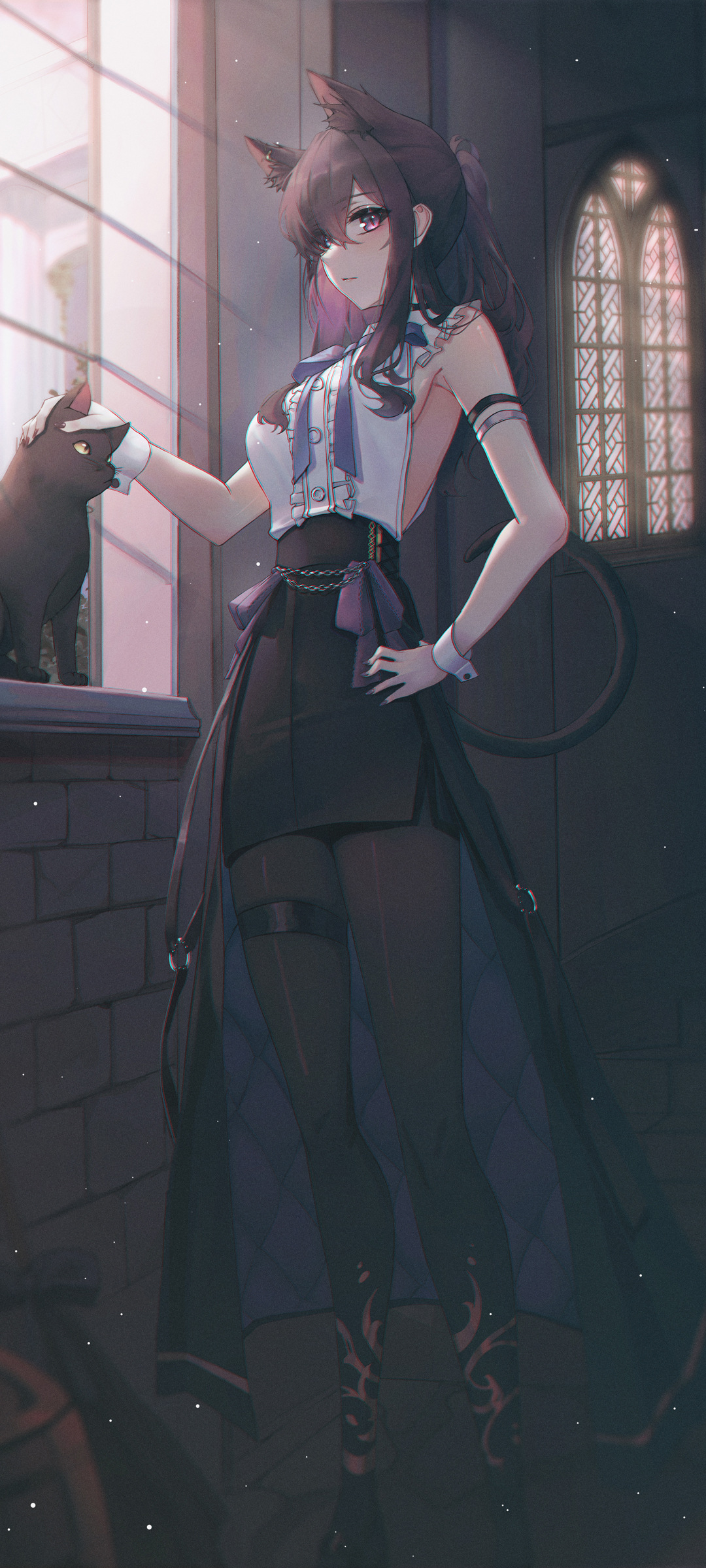宝座座椅旁厚涂美女黑色裙子全面屏动漫手机壁纸免费下载