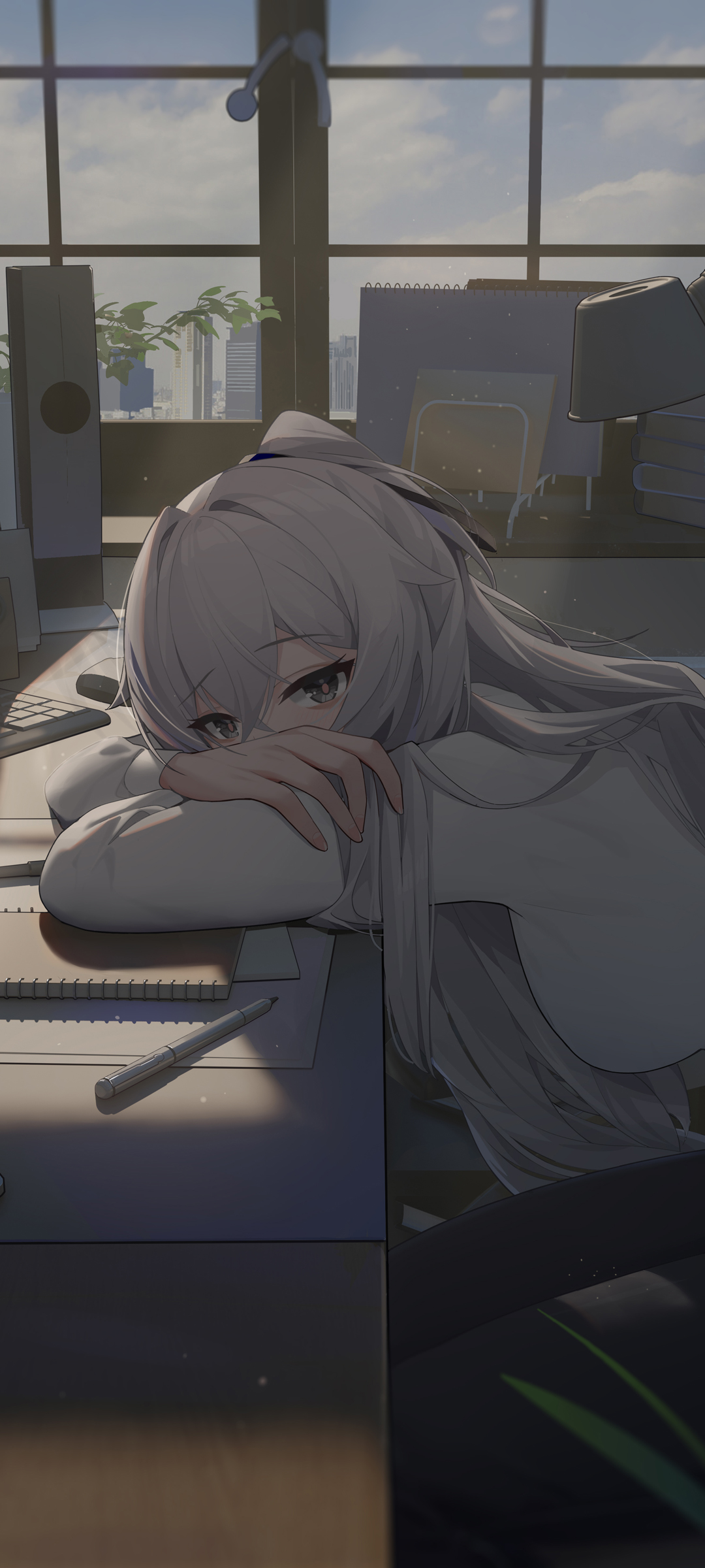 趴在桌上女子全屏动漫手机壁纸 免费高清下载