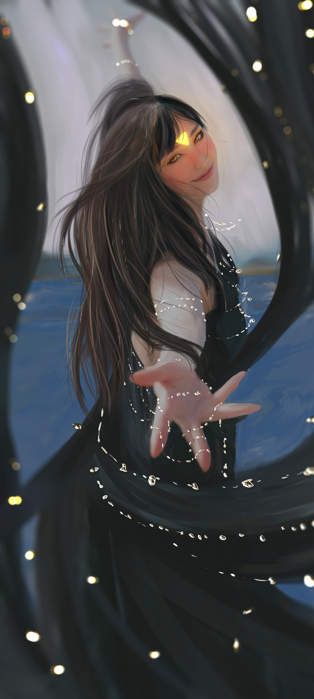 公主 长发 黑色裙子 魔法 手机全屏壁纸