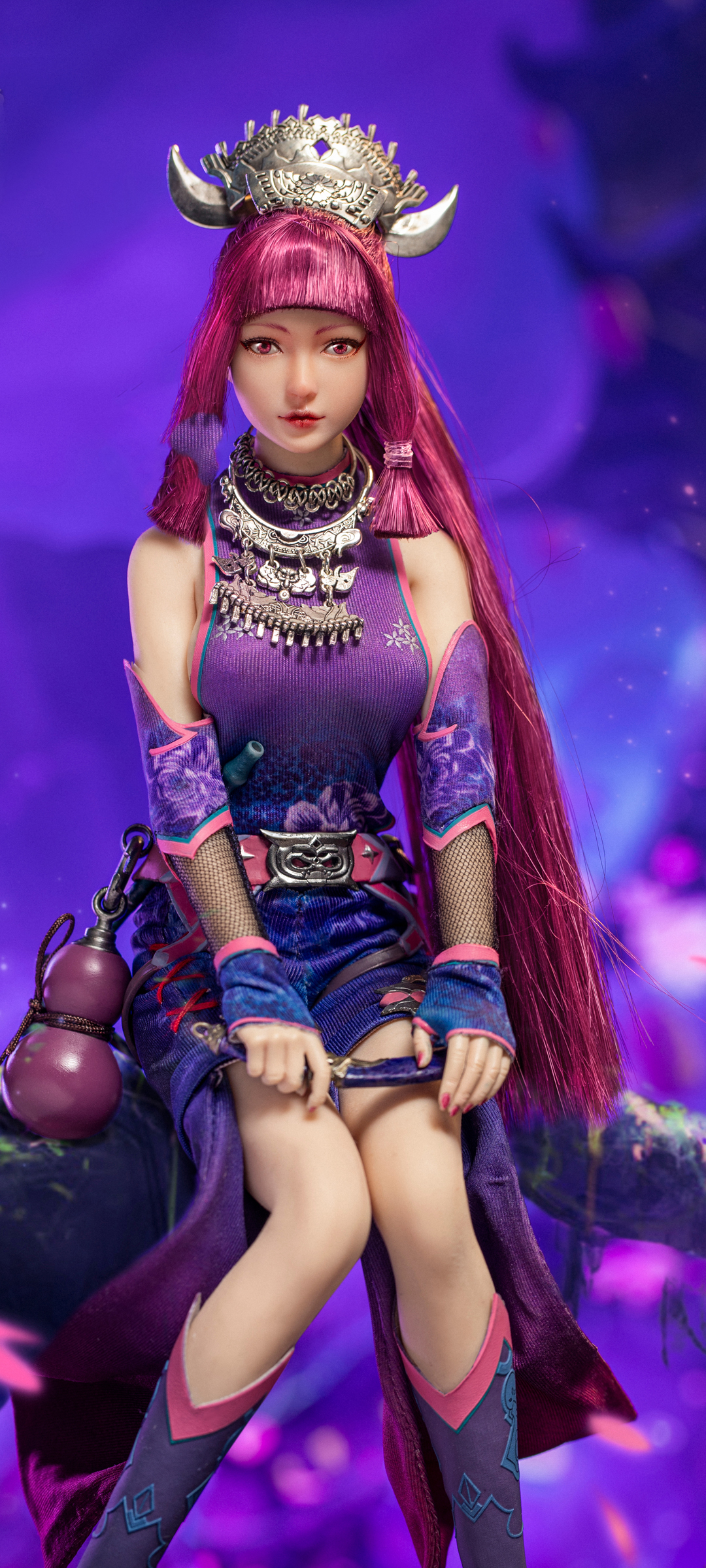 一手托腮长发兽角女孩动漫手机壁纸免费下载