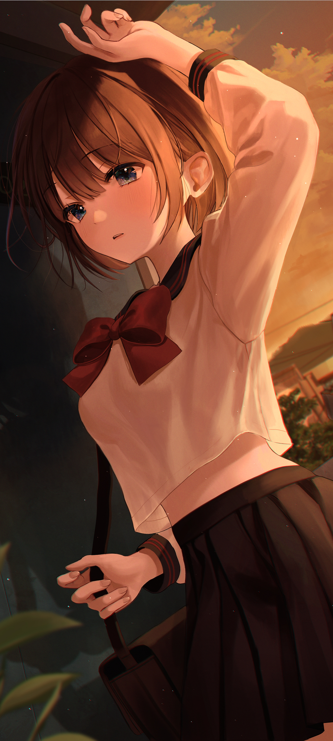 绑辫子动漫美女全面屏手机壁纸免费下载