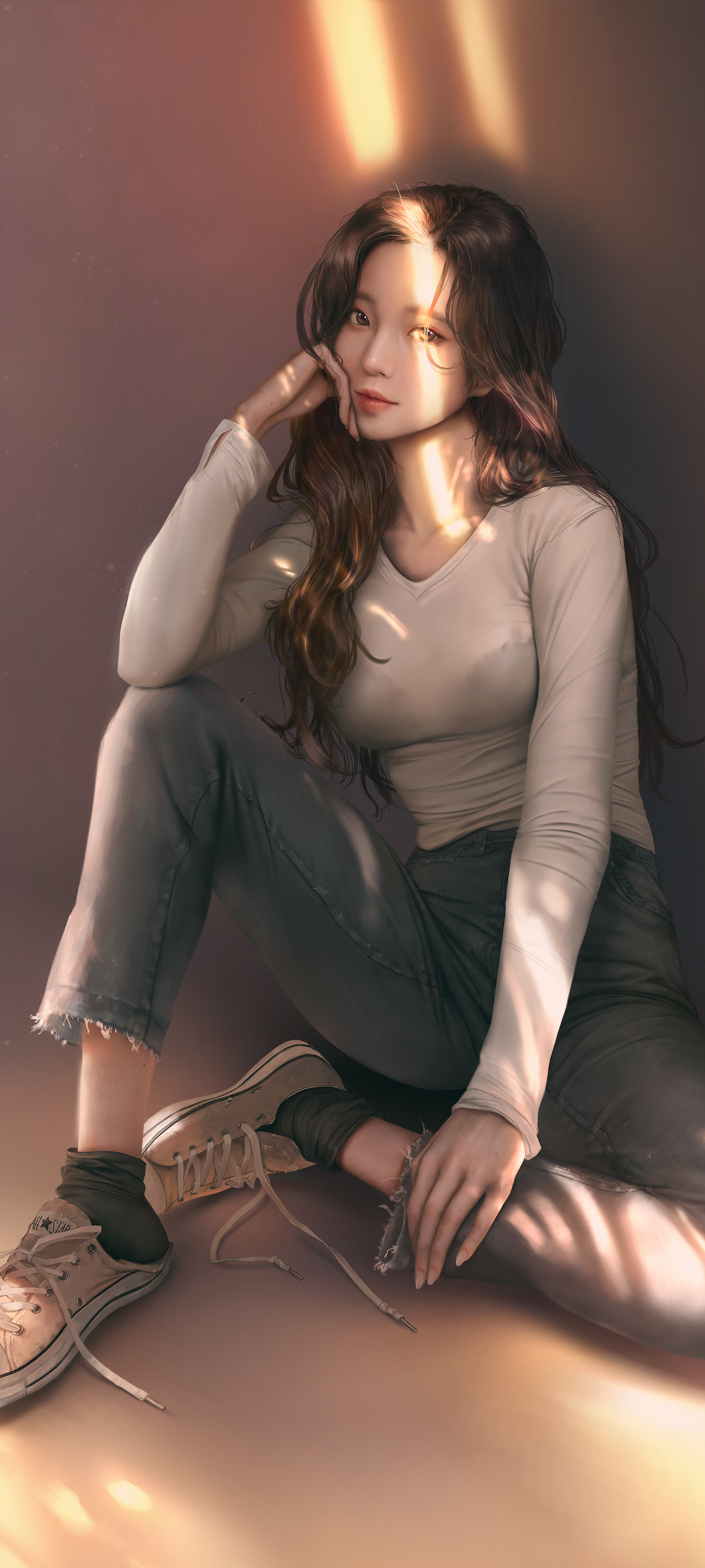 AI绘画白色长发银光裙好身材美女动漫手机壁纸免费下载