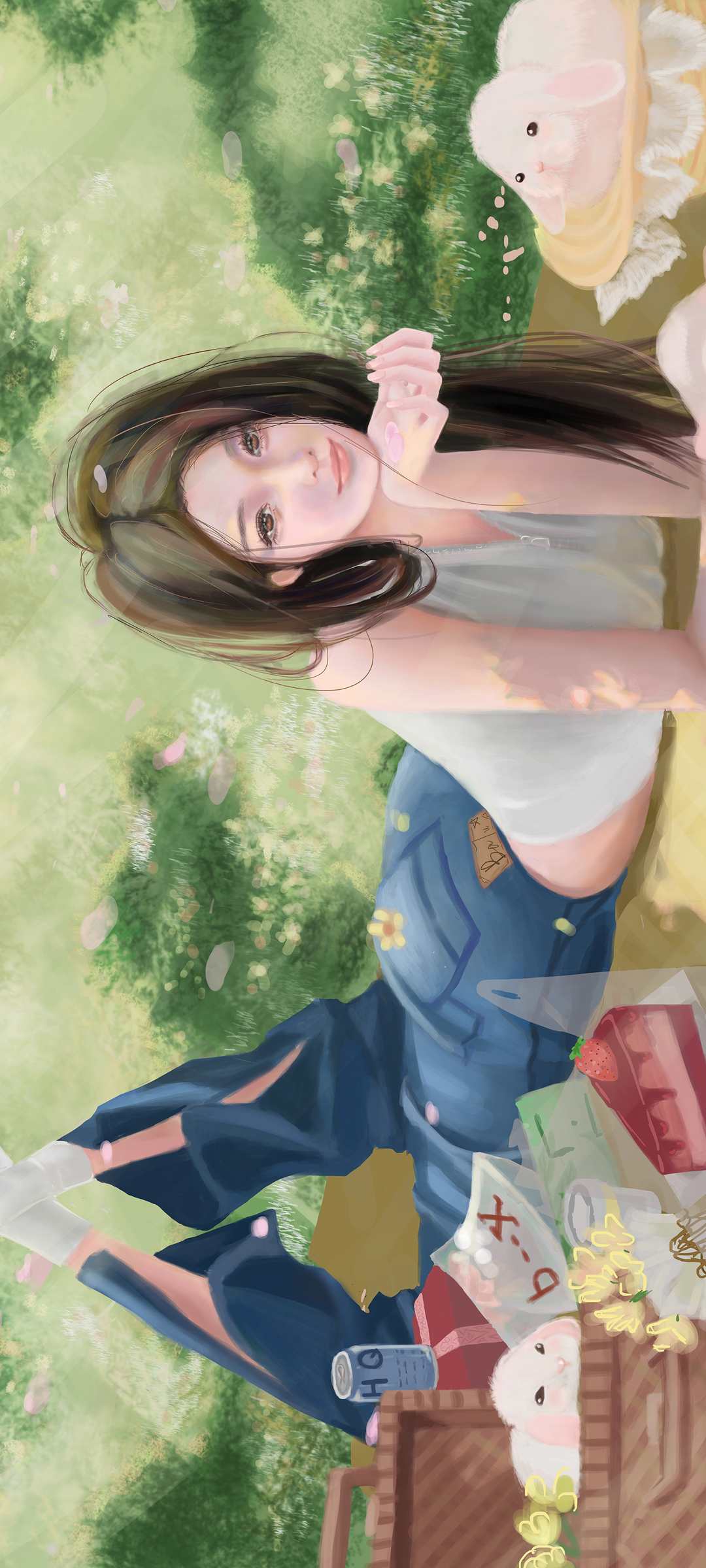 动漫美女白色裙子配鲜花帽子唯美手机壁纸免费下载