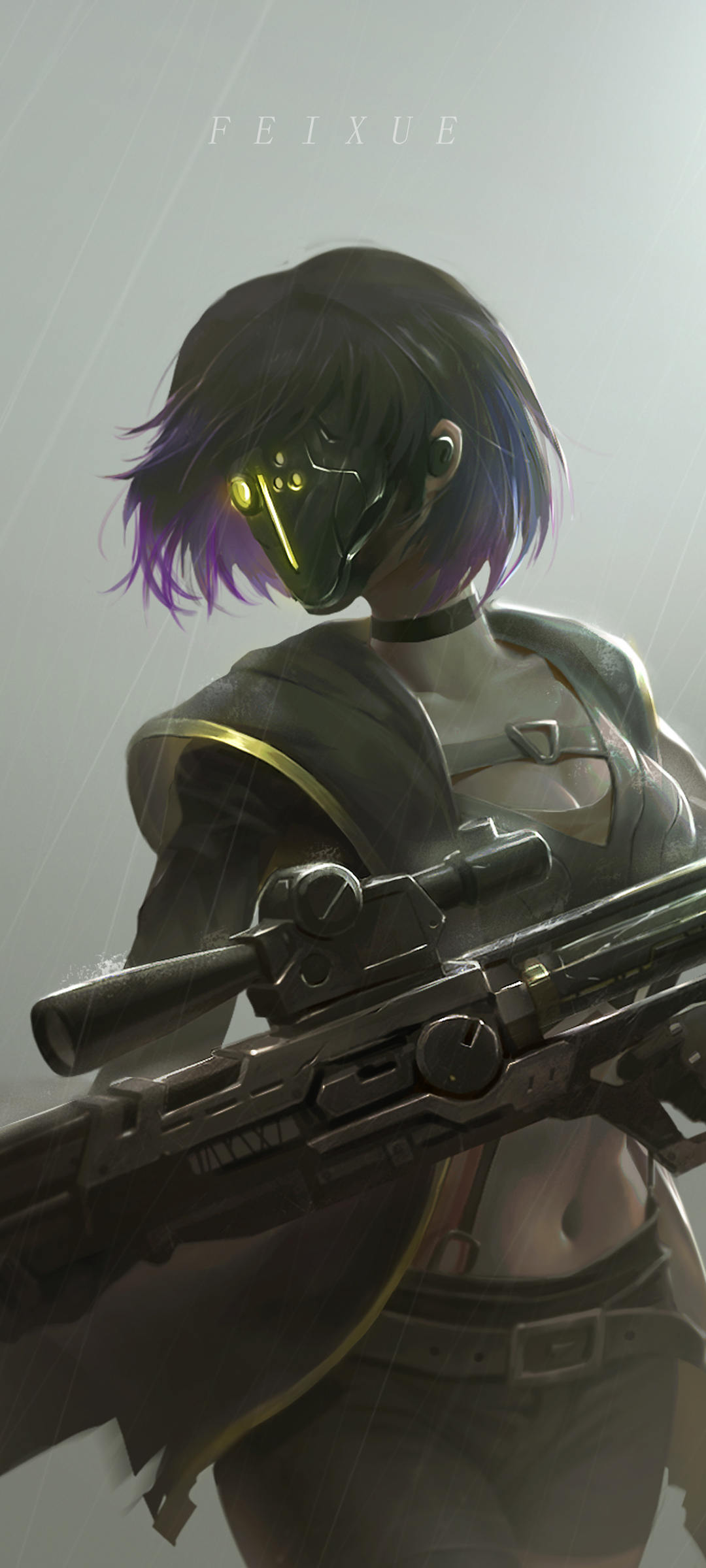雨天路上静坐女孩动漫手机壁纸免费下载