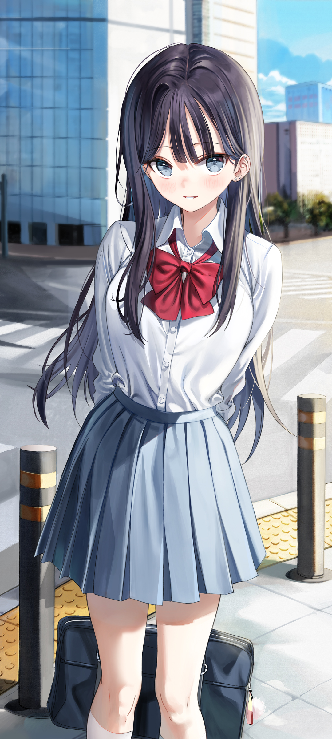 可爱长发动漫女孩白色衣服百褶裙免费手机壁纸下载