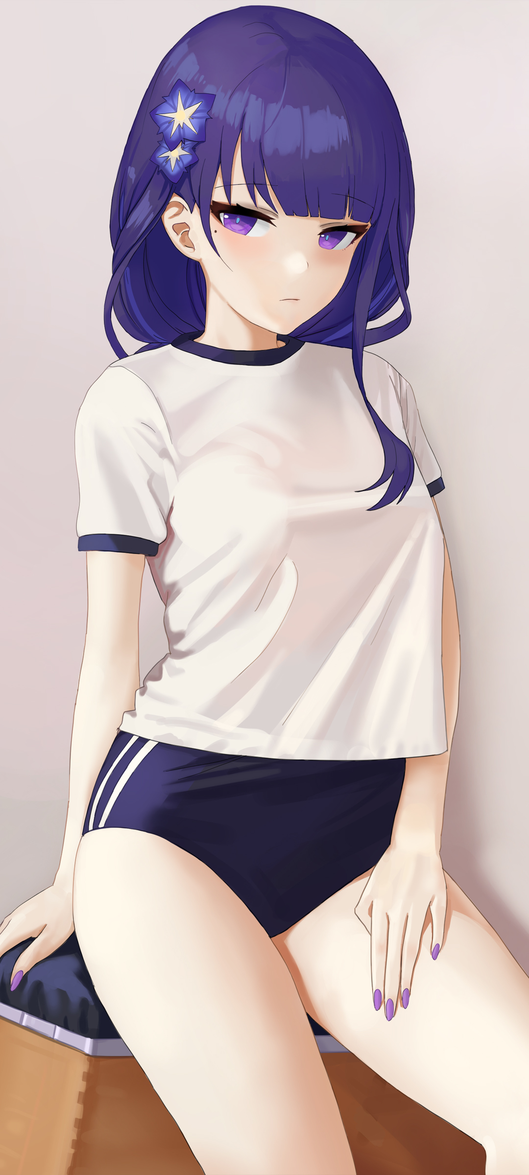 海滩少女大长腿黑色短裤动漫手机壁纸免费下载